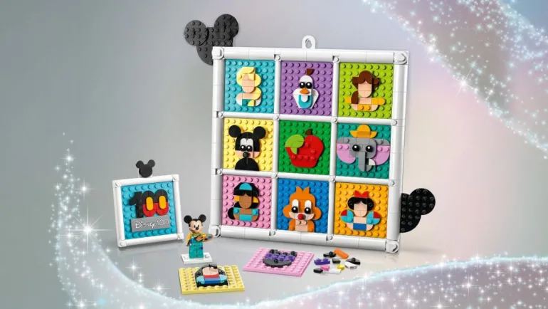 LEGO® ǀ Disney 100 Jahre Disney Zeichentrickikonen (43221) ist ein tolles Set, das Kinder und Fans ab 6 Jahren eine kreative Kollage zusammenfügen lässt. Das Set beinhaltet zwölf 8×8 Platten, einen Bilderrahmen und Aufhänger sowie jede Menge Steinchen, um gleichzeitig 12 Ikonen darzustellen.