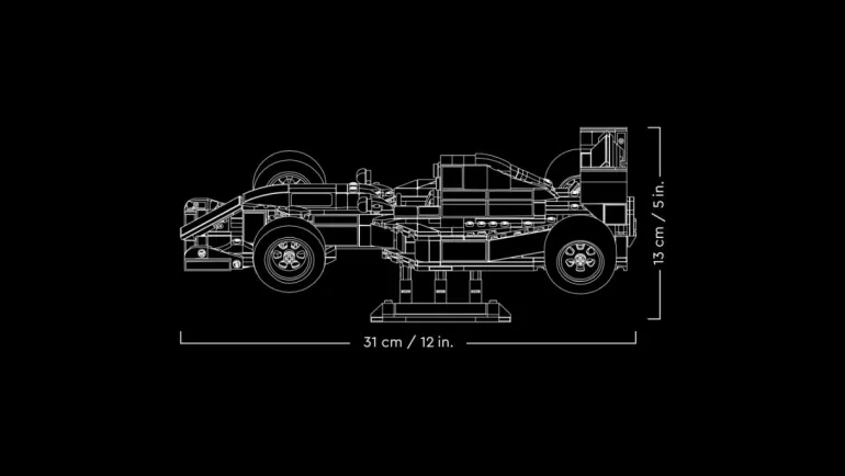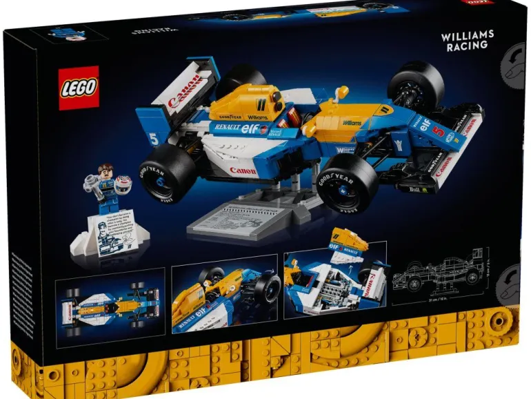 LEGO Icons Williams Racing FW14B mit Nigel Mansell (10353) ist eine faszinierende Hommage an spannende Innovationen aus der F1 Geschichte. Das Modellauto aus diesem Bauset für Erwachsene macht sich toll als Schreibtisch-Deko. Erschaffe eine Nachbildung des legendären Formel-1-Rennwagens, der Nigel Mansell im Jahr 1992 den Formel-1-Weltmeistertitel bescherte. Dieses Premium-Modell zum Ausstellen wird durch die Minifigur des Rennfahrers Nigel Mansell zum Leben erweckt. Das imposante Sammlerstück ist ein tolles Weihnachts- oder Geburtstagsgeschenk für erwachsene oder auch jugendliche Fans der Formel 1. Das LEGO Icons Williams FW14B Rennauto verfügt über eine funktionierende Lenkung, breite Slicks mit dem Aufdruck Goodyear an den Heckrädern und einen detaillierten Motor sowie über einen Ständer samt Infotafel mit Statistiken zum Auto. Die Figur Nigel Mansell trägt einen Helm und steht auf einem Ständer in Form eines Siegerpodests mit einem Foto und einem Zitat des legendären Rennfahrers. Entdecke das breite Sortiment an LEGO F1 Bausets für Erwachsene. In der LEGO Builder App findest du eine 3D-Version der Bauanleitung, die dem faszinierenden Ausstellungsstück aus diesem Fahrzeug Bauset beiliegt. Der Williams Racing FW14B ist 7 cm hoch, 31 cm lang und 15 cm breit. Enthält 799 Teile.