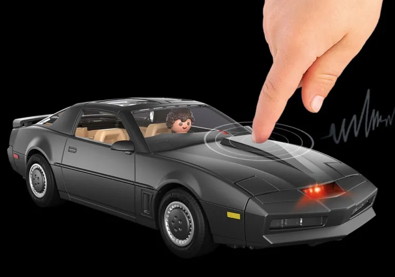 Knight Rider – Ein Mann und sein Auto kämpfen gegen das Unrecht.“ Ein totgeglaubter Polizist mit einer neuen Identität, getrieben vom Wunsch nach Gerechtigkeit, macht sich mit der Hilfe von K.I.T.T., einem futuristischen Auto mit künstlicher Intelligenz, Hightech Ausstattung und Waffen auf, das Verbrechen zu bekämpfen. Jetzt hält K.I.T.T., das legendäre Wunderauto aus der 80er-Jahre Hit-Serie Knight Rider Einzug in die PLAYMOBIL-Autoflotte. Genau wie sein großer Bruder ist das K.I.T.T. Fahrzeugmodell von PLAYMOBIL mit einer ganzen Reihe authentischer Funktionen ausgestattet, wie einem Drucker unter dem Armaturenbrett zum Ausdrucken von Fahndungsfotos, einem drehbaren Nummernschild, einem Seil mit Enterhaken, ausfahrbaren Scheinwerfern und einem abnehmbaren Dach. K.I.T.T. verfügt über elektronische Geräusche und Lichter, die über ein Touch-Feature auf der Motorhaube gesteuert werden. Das Fahrzeug zitiert Sätze aus der Serie mit der kultigen Originalstimme von K.I.T.T.. Bestimmte Zitate sind mit der Ein/Aus-Funktion verknüpft, die anderen werden nach dem Zufallsprinzip abgespielt. Gleichzeitig leuchtet die ikonografische Lichterkette am Kühlergrill des Fahrzeugs auf und das Licht auf dem Armaturenbrett flackert. Neben Titelheld Michael Knight enthält das Spielset auch ausgefeilte Accessoires wie Bonnie Barstows Computerlabor und Devon Miles‘ Büromöbel. Jetzt heißt es einsteigen und losfahren zur nächsten Mission!