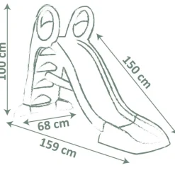 Der breite Rutschauslauf sorgt für weiche Landungen. Die Leiter ist mit dem Geländer, dem breiten Standfuß und dem Anti-Rutsch-Treppenstufen besonders sicher und stabil. Die Rutsche kann kinderleicht zu ihrer Gesamtgröße (Gesamtlänge: 159 cm, Höhe: 100 cm, Breite: 68 cm) montiert werden. Zum praktischen Verstauen lässt sie sich genauso schnell und einfach demontieren.