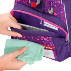 – zur Beförderung von Schulutensilien vom Stift bis zum Sportzeug 5-teiliges Schulranzen-Set bestehend aus: – Schulranzen – Federmäppchen, komplett bestückt – Schlamperetui – Turnbeutel – MAGIC MAGS (2 Applikationen und 1 Anhänger) Schulranzen: – der geräumige Schulranzen mit strahlenden Highlights – fluoreszierende Neonfarben im Schulranzendruck unterstützen die Sichtbarkeit – wechselbare Motive, MAGIC MAGS – EASY GROW SYSTEM: Schulranzen wächst von der 1. bis zur 4. Klasse mit – ultraleichte, elastische Fiberglas-Rückenkonstruktion und ergonomisch geschwungene, atmungsaktive Rückenpartie – verstellbare und ergonomische Schultergurte – Lageverstellriemen zur körpernahen Schulranzen-Positionierung – abnehmbarer, höhenverstellbarer Brustgurt – Gurtenden-Einhängung – gepolsterte, abnehmbare Hüftflosse – seitlich nach außen wachsende Reißverschluss- und Fronttasche mit Auslaufösen – Aufhängeschlaufe und gepolsterter Tragegriff – Fidlock-Magnetverschluss – Hauptfach mit Bücherfach – Laschen zur Aufbewahrung des Federmäppchens im Deckel – wasserdichte Bodenplatte – reflektierende Elemente sorgen für Sicherheit im Straßenverkehr und bei Dunkelheit – strapazierfähiges und wasserabweisendes Material mit 100% PFC-freier Beschichtung – die Textilien bestehen zu 100% aus recycelten PET-Flaschen – sozial verträglich und verantwortungsvoll produziert Verbraucherhinweis: Die Bestandteile des MAGIC MAGS-Zubehörs lassen sich beliebig oft von den entsprechenden Flächen des Schulranzens abnehmen und durch andere MAGIC MAGS ersetzen. Diese sind in 3er-Sets separat erhältlich. Für eine neutrale Gestaltung des Ranzens können die MAGIC MAGS einfach komplett weglassen werden, ohne dass störende Klettflächen entstehen. So wird jeder Schulranzen zum Unikat. Das Gewicht des Schulranzen-Korpus ohne abnehmbare Elemente beträgt ca. 1250 g. Das Gesamtgewicht des Schulranzens mit allen abnehmbaren Elementen beträgt ca. 2050 g.