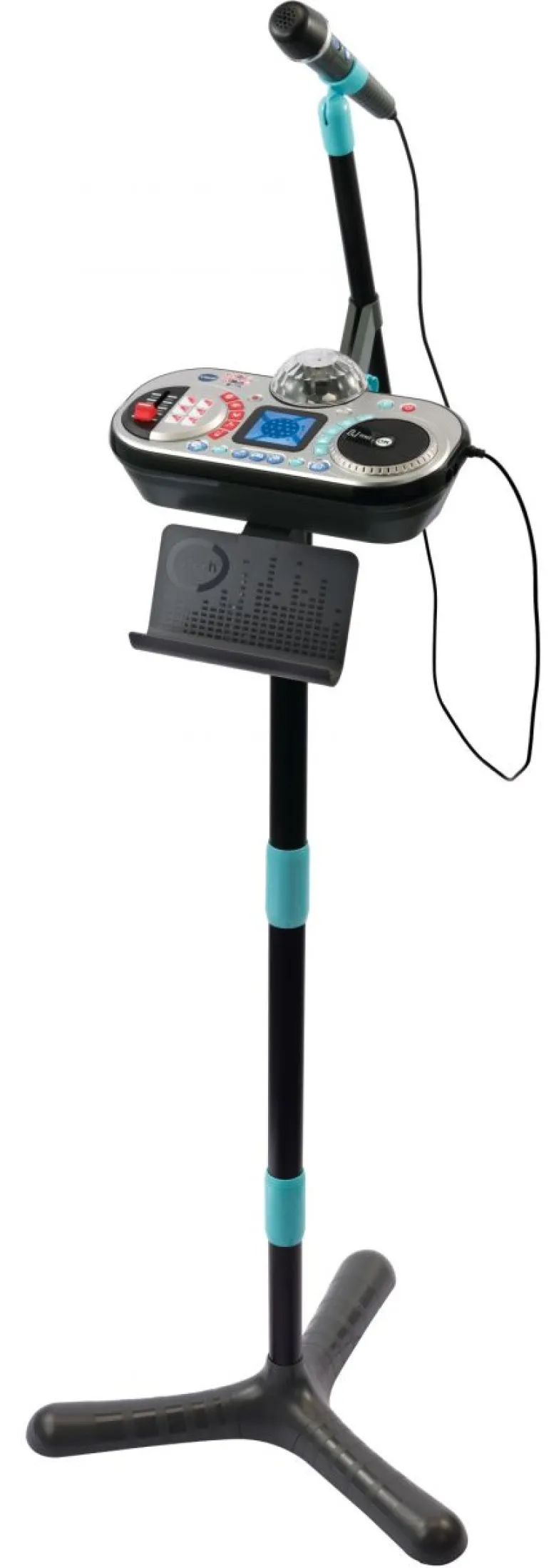 Mit dem 10-in-1 Kidi Super Star DJ Studio zum Superstar werden! Stimmreduktionfunktion: Gesang kann von allen vorinstallierten und den meisten externen Liedern reduziert oder entfernt werden. DJ-Funktion: Zum DJ werden und selbst Musik mischen. Geräuscheffekte oder Gesang hinzufügen, 8 vorinstallierte Lieder mit coolen Animationen. Diskolicht, das passend zur Musik leuchtet. Coole Stimmverzerreffekte, Aufnahmefunktion, so kann die Performance immer wieder angehört werden, Spiele und Aktivitäten. Coole Publikum-Effekte hinzufügen. Externen Musikplayer anschließen und zu den eigenen Lieblingsliedern singen. Eingebauter Lautsprecher, abnehmbares DJ Mischpult, das überall mit hingenommen werden kann. Inklusive Klinkenkabel, Lautstärkeregler, kindersicheres Batteriefach und Abschaltautomatik. Demobatterien enthalten. Alter: 6-12 Jahre.