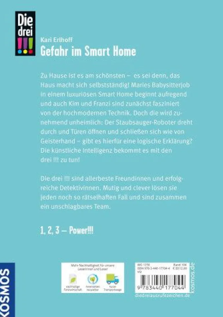 Marie ist ein richtiger Glückspilz! Sie wird von einer erfolgreichen Geschäftsfrau als Babysitterin engagiert. Kim und Franzi trauen ihren Augen kaum, als sie das futuristische Luxus-Apartment der Familie besuchen. Hier gibt es neueste Technik nach modernsten ökologischen Standards. Doch irgendetwas stimmt nicht. Seltsame Dinge geschehen und die intelligenten Systeme des Hauses versagen. Spuk? Oder steckt etwas anderes dahinter? Die drei !!! ermitteln zwischen KI, IOT, Smart Home und echtem Diebstahl. Zusammen suchen die Detektivinnen in diesem kniffligen Fall nach Spuren.
