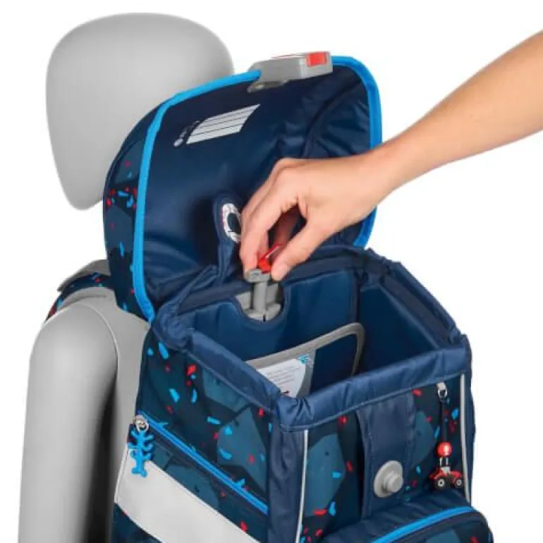 – zur Beförderung von Schulutensilien vom Stift bis zum Sportzeug 6-teiliges Schulranzen-Set bestehend aus: – Schulranzen – Federmäppchen, komplett bestückt – Schlamperetui – Turnbeutel – Schablonen – MAGIC MAGS (2 Applikationen und 1 Anhänger) Schulranzen: – der Schulrucksack im Schulranzen – mit 3 herausnehmbaren Schablonen zum Umwandeln in einen Schulranzen – wechselbare Motive, MAGIC MAGS – EASY GROW SYSTEM: Schulranzen wächst von der 1. bis zur 4. Klasse mit – ultraleichte, elastische Fiberglas-Rückenkonstruktion und ergonomisch geschwungene, atmungsaktive Rückenpartie – verstellbare und ergonomische Schultergurte – Lageverstellriemen zur körpernahen Schulranzen-Positionierung – abnehmbarer, höhenverstellbarer Brustgurt – Gurtenden-Einhängung – gepolsterte, abnehmbare Hüftflosse – seitlich nach außen wachsende Reißverschluss- und Fronttasche mit Auslaufösen – Aufhängeschlaufe – Fidlock-Magnetverschluss – verstärkter Tunnelzug zur kindgerechten Bedienung – Hauptfach mit Bücherfach – wasserdichte Bodenplatte – reflektierende Elemente sorgen für Sicherheit im Straßenverkehr und bei Dunkelheit – strapazierfähiges und wasserabweisendes Material mit 100% PFC-freier Beschichtung – die Textilien bestehen zu 100% aus recycelten PET-Flaschen – sozial verträglich und verantwortungsvoll produziert. Verbraucherhinweis: Die Bestandteile des MAGIC MAGS-Zubehörs lassen sich beliebig oft von den entsprechenden Flächen des Schulranzens abnehmen und durch andere MAGIC MAGS ersetzen. Diese sind in 3er-Sets separat erhältlich. Für eine neutrale Gestaltung des Ranzens können die MAGIC MAGS einfach komplett weglassen werden, ohne dass störende Klettflächen entstehen. So wird jeder Schulranzen zum Unikat. Das Gewicht des Schulranzen-Korpus ohne abnehmbare Elemente beträgt ca. 1250 g. Das Gesamtgewicht des Schulranzens mit allen abnehmbaren Elementen beträgt ca. 2050 g.