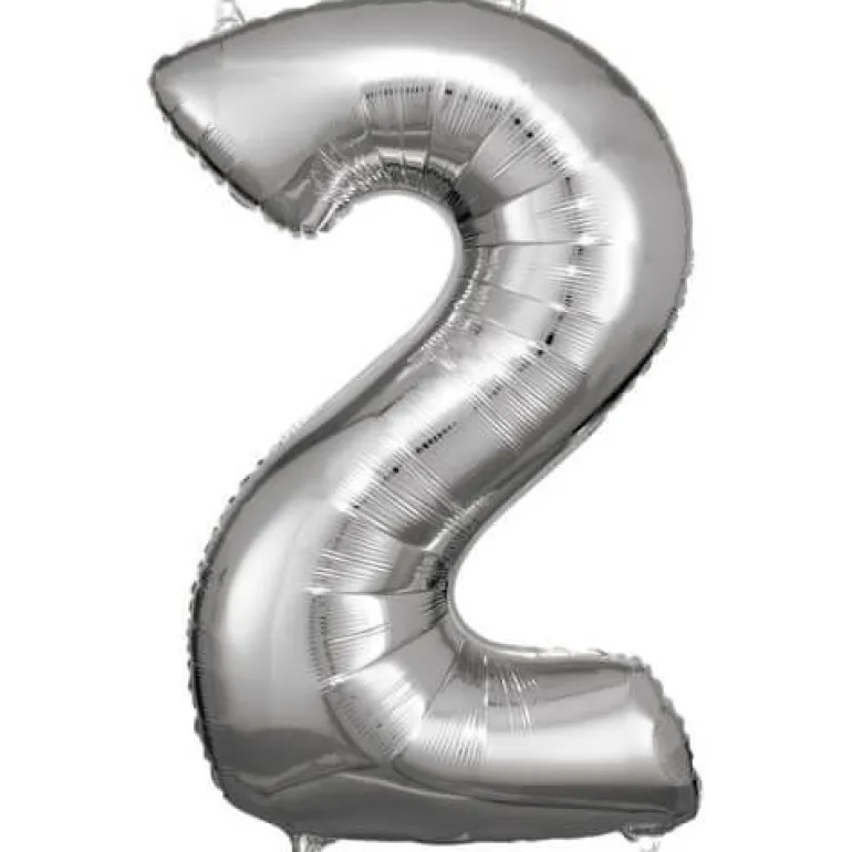 amscan® – Folienballon Grosse Zahl 2 Silber, 50 x 88 cm