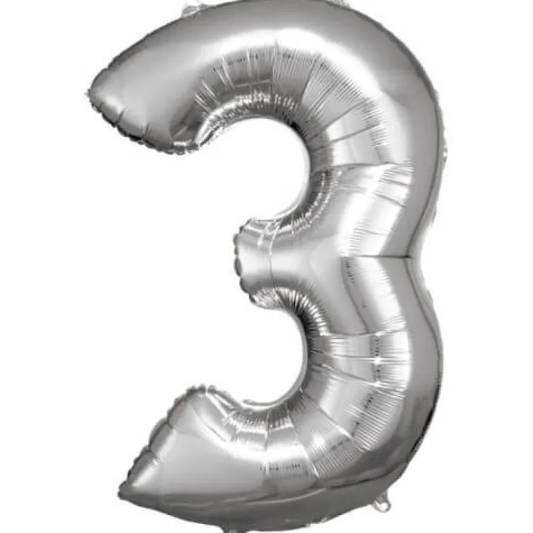 amscan® – Folienballon Große Zahl 3 Silber, 53 x 88 cm