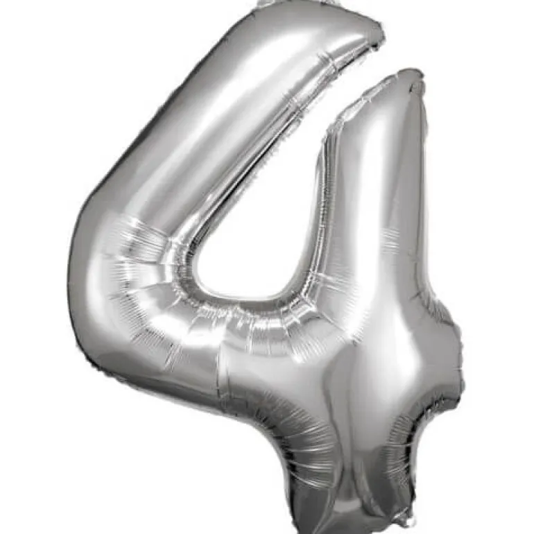 amscan® – Folienballon Große Zahl 4 Silber, 66 x 88 cm