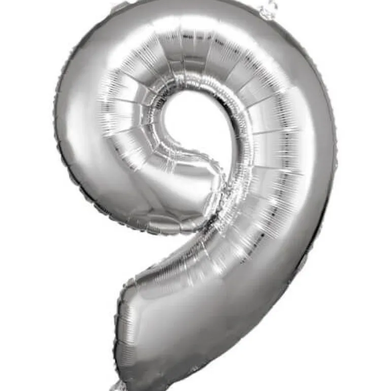amscan® – Folienballon Große Zahl 9 Silber, 63 x 86 cm