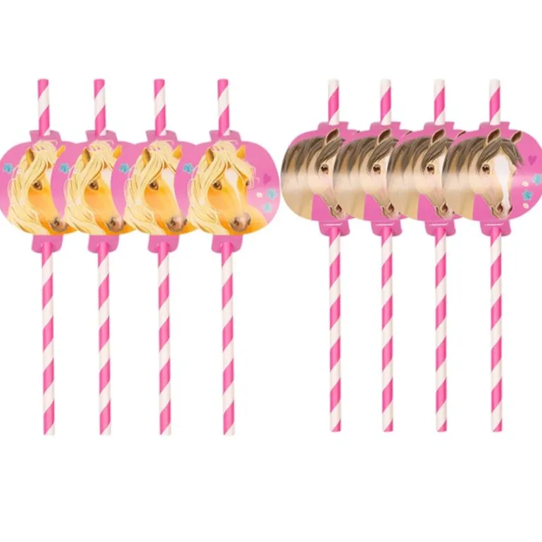 amscan® Pretty Pony – 8 Trinkhalme mit Aufsteckkarten Papier, sortiert