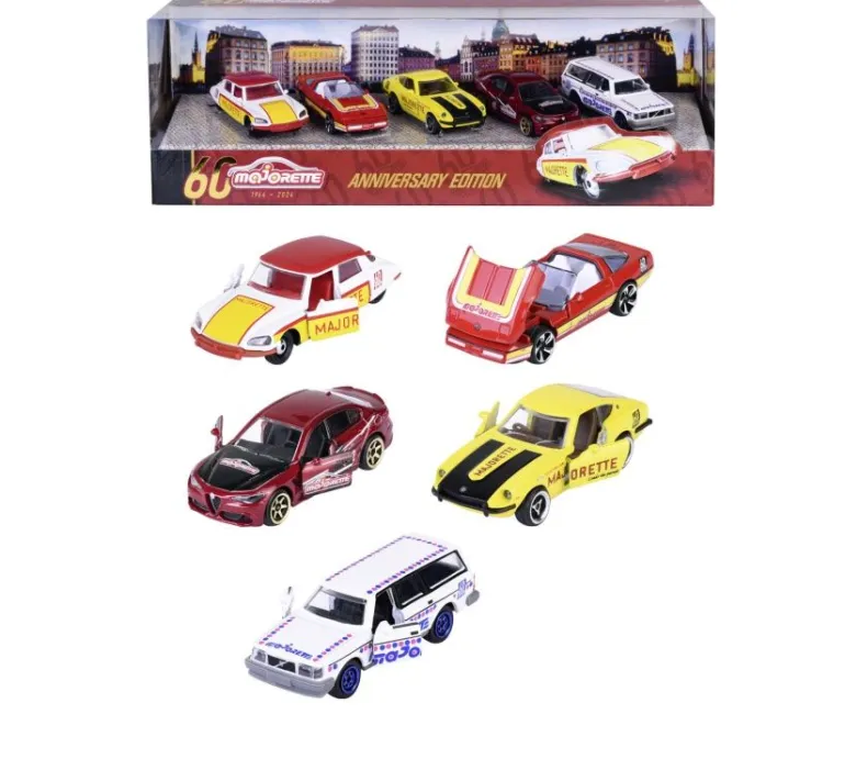 Majorette – Geschenk-Set 60 JAHRE MAJORETTE (5 Modellautos) – 5 Premium Spielzeugautos aus Metall mit 2 exklusiven Auto-Modellen, je 7,5 cm, für Kinder ab 3 Jahre
