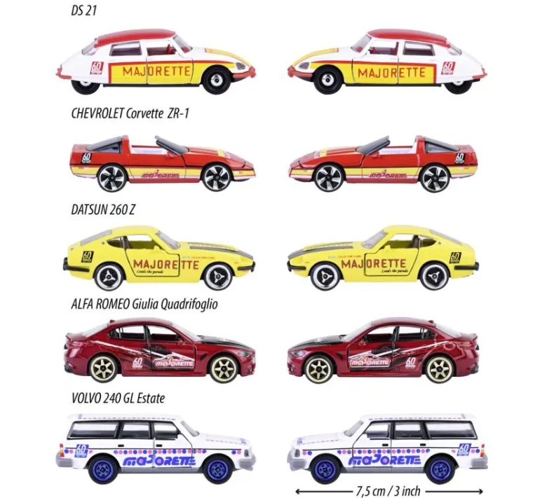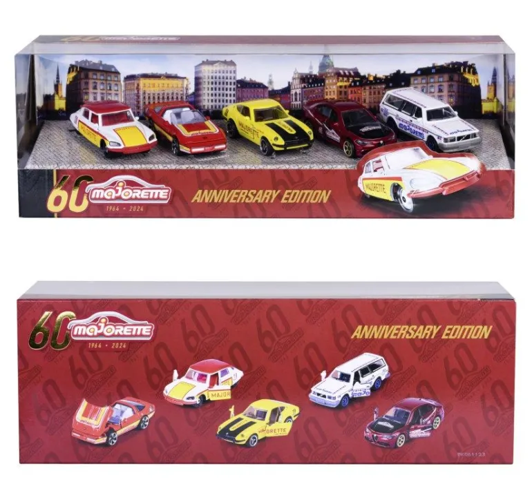 • Majorette Geburtstags-Edition – Feiern Sie den 60. Geburtstag der Majorette Modellautos mit 5 ikonischen Autos aus 60 Jahren Automobil- und Majorette-Geschichte – inkl. 2 exklusiver Automodelle!