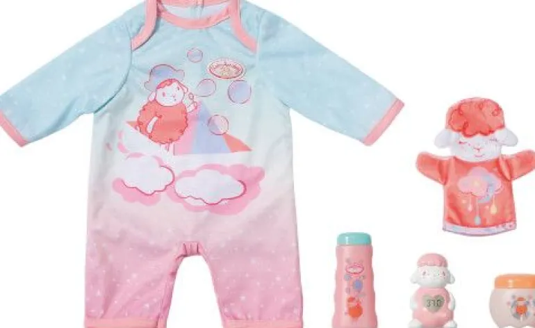 Annabell hat öfters mal eine Milchschnute. Die kann dann prima mit dem Waschhandschuh in Schäfchenform weggewischt werden. Was mag wohl in den beiden Döschen sein? Vielleicht ein Babyöl und eine Pflegemilch? Damit geht das Saubermachen noch viel besser. Nach der Säuberungsaktion will die Kleine immer noch eine Runde Engelchen flieg! spielen. Auf Annabells putzigem Strampler sind am Rücken nämlich kleine Flügelchen aufgedruckt. Da bekommt sie gleich rote Wangen vor lauter Spaß. Naja, lieber mal schauen, welche Temperatur das Schäfchen-Thermometer anzeigt Original Kleidung/Accessoires für die Baby Annabell Markenspielpuppe. Das hochwertige Zubehör fördert die Fantasie und bringt neue Spielanregungen und möglichkeiten. Baby Annabell Babypflegeset aus Strampler, Waschhandschuh, Thermometer und zwei Dosen.