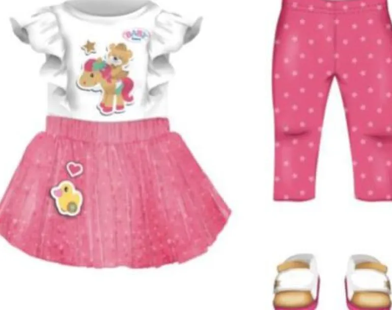 Süßer Zweiteiler bestehend aus Kleidchen mit Rüschen und Glitzer-Tüllrock, Leggings und Schuhen. Damit fühlt sich BABY born Little garantiert jeden Tag pudelwohl.