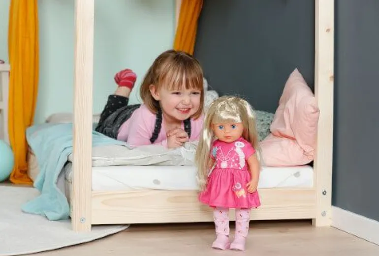 Die kleine Schwester Sarah ist mit ihren 36 cm Größe die perfekte Ergänzung in der BABY born Familie. All ihre 7 Spielfunktionen kommen ohne Batterien aus. Besonders toll sind ihre langen, blonden Haare aus hochwertigem Nylon, die mit 11 verschiedenen Accessoires gestyled, gekämmt und frisiert werden können. Doch nicht nur um die Haare kann sich liebevoll gekümmert werden: Sarah kann aus ihrem Fläschchen trinken, echte Tränen weinen und schließt ihre Augen beim Hinlegen. Sie ist außerdem superbeweglich, kann ihre Knie beugen und alleine stehen. Damit ist sie sowohl für Kinder ab 3 Jahren, aber auch für ältere Kinder geeignet. • Kann trinken, schlafen baden, weinen, alleine stehen und die Knie beugen • Ist super beweglich und vollständig badebar • Mit langem hochwertigen Nylon-Haar zum Kämmen und Frisieren • Mit 11 Accessoires