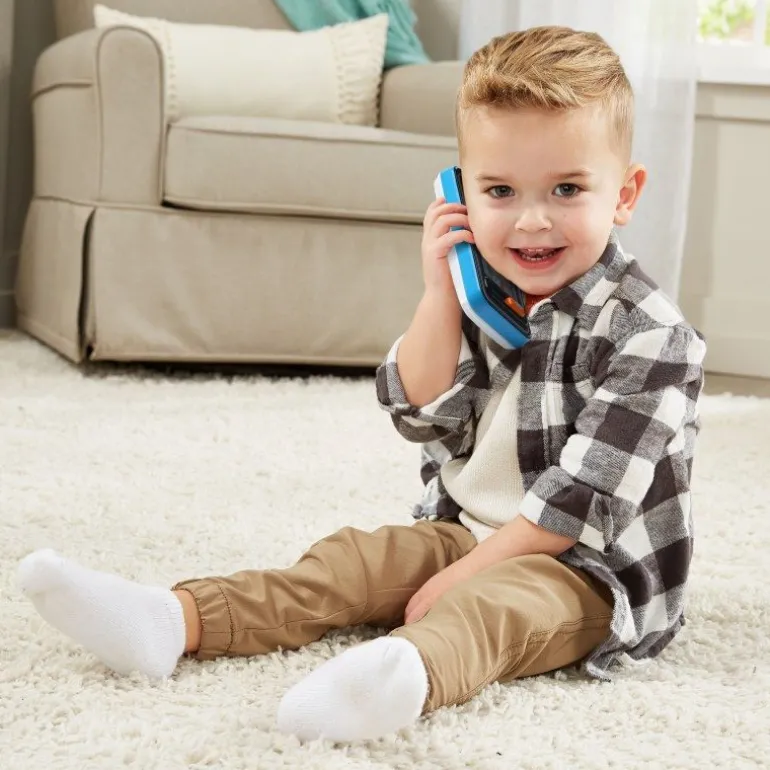 Musik- und Spielspaß mit dem ersten eigenen Smartphone! Kindergerechtes Spielzeughandy mit verschiedenen Tasten und Schiebeelementen, das Musik und Antworten abspielt 14 App-Tasten, mit denen man Tiere, Zahlen, erste Wörter und mehr kennenlernt so gibt es z. B. eine Kalenderapp, Textnachrichten, Wetterapp, Spiele und Musik inklusive mehrerer Lieder und Melodien. Bewegt man den Schieber am unteren Ende des Bildschirms, werden Klaviertöne abgespielt und man kann seine eigene Musik kombinieren oder den Lichtern folgen, um eine Melodie Note für Note zu spielen. Kindersicheres Batteriefach, Abschaltautomatik und Lautstärkeregler. Demobatterien sind enthalten.