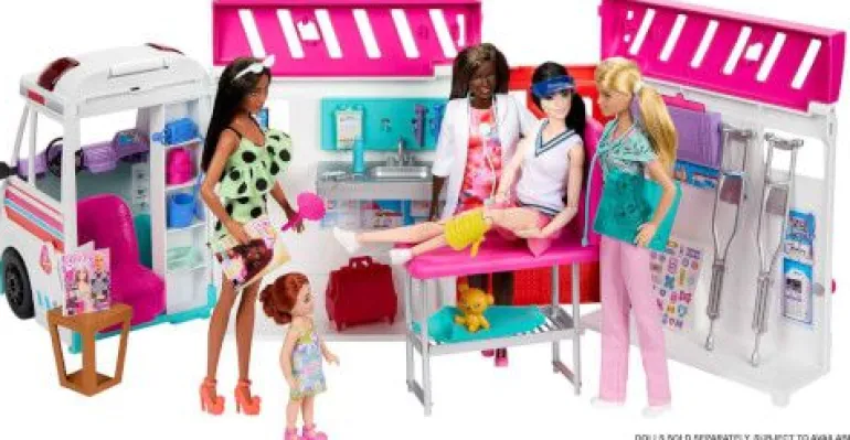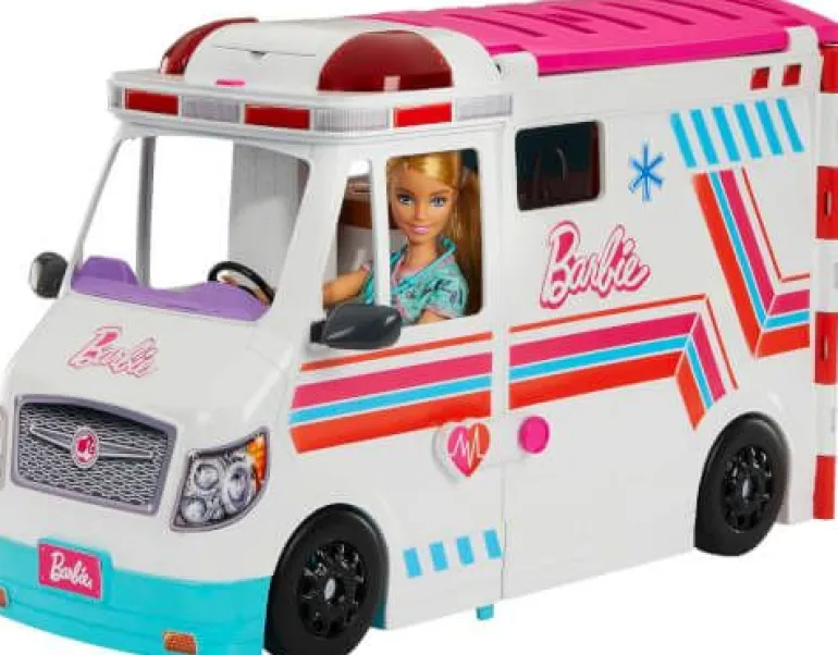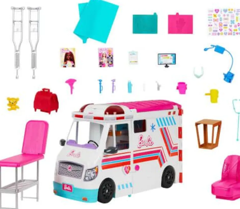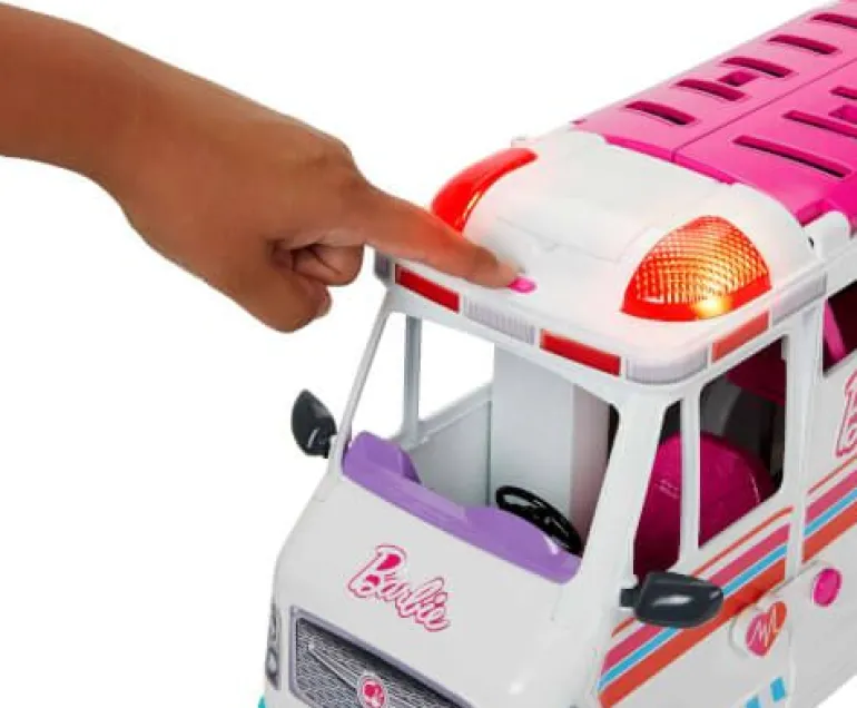 Mit dem Barbie 2-in-1-Krankenwagen Spielset können Kinder als Klinikmitarbeiter ihre fürsorgliche Seite entdecken. Der 2-in-1-Krankenwagen lässt sich von einem Krankenwagen mit Lichtern und Geräuschen in eine Arztpraxis mit Untersuchungsraum, Untersuchungstisch, Rezeption und Wartezimmer verwandeln.