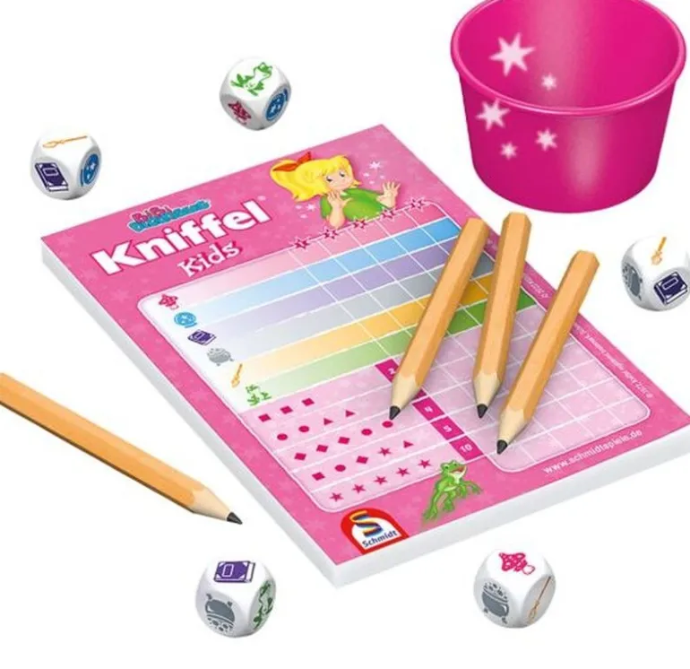 Im Jahr 2022 feierte der Spieleklassiker Kniffel® 50jähriges Jubiläum – nun folgt die Kinderversion mit der beliebten Hexe Bibi Blocksberg. Statt aus Zahlen passende Kombinationen wie Full House oder Große Straße zu sammeln, warten hier magische Gegenstände und Gefährten darauf, gewürfelt und kombiniert zu werden. Zwei bis sechs Spielende ab fünf Jahren würfeln und punkten um das beste Ergebnis.