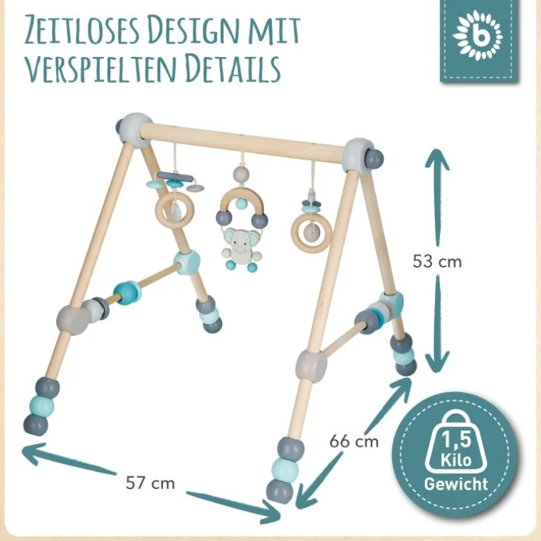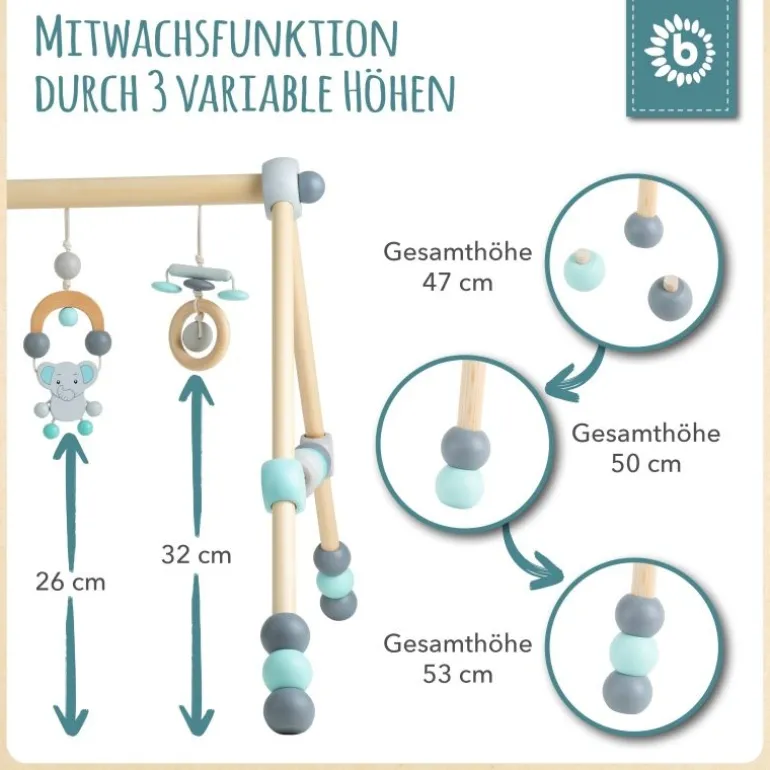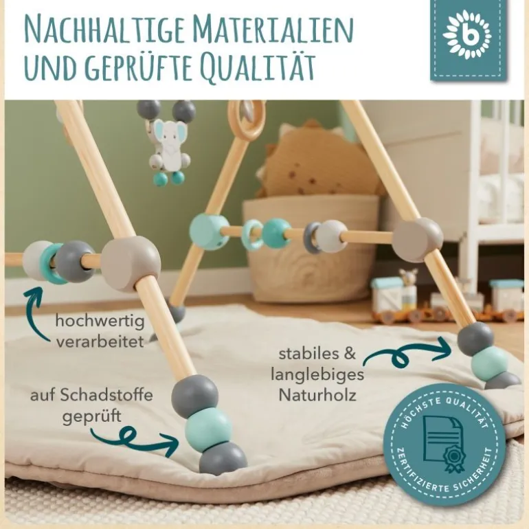 Für Babys gibt es hier viel zu entdecken. Das Holzspieltrapez von BIECO bietet Babys bereits ab der Geburt an viel Spannendes zum Schauen, Staunen und Greifen. Mit diesem Spielebogen für Babys Holz, haben die Kleinen nicht nur jede Menge Spaß, sondern trainieren auch gleichzeitig auf spielerische Weise ihre Geschicklichkeit und ihr Beobachtungsvermögen. Die schönen bunten Spielelemente über dem Kopf und an den Seiten, sind Dank der Höhenverstellbarkeit des Holzspielzeuges für Dein Baby einfach zu erreichen. Ganz nebenbei fördert das kunterbunte Spieltrapez auch die Hand – Augen – Koordination und die Motorik.