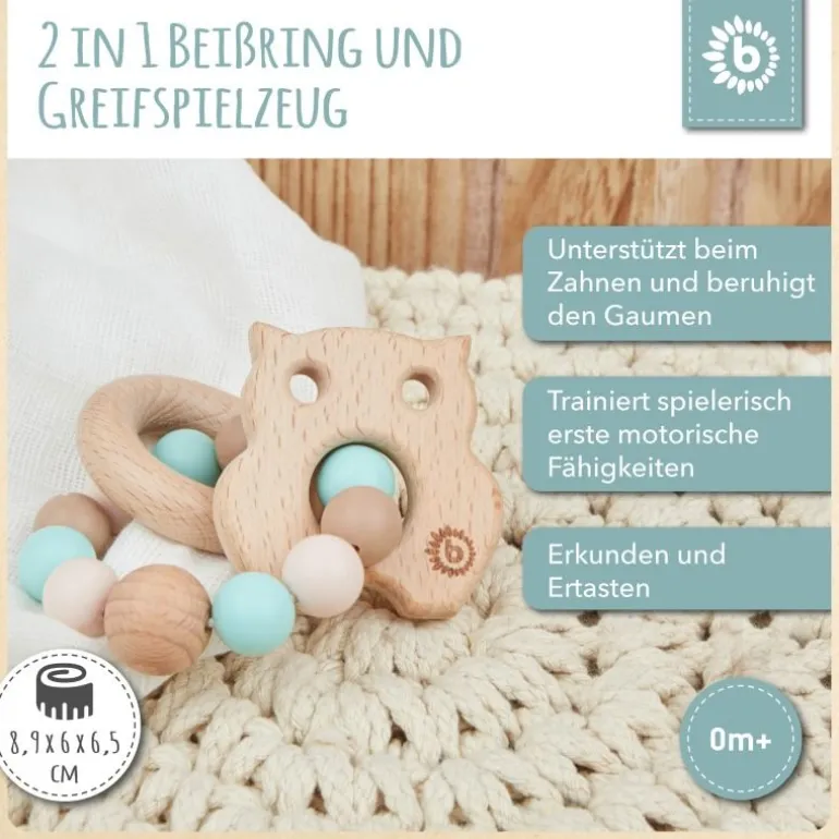 Der Silikon Beißring mit der süßen Eule von Bieco ist die perfekte Unterstützung für das Zahnen Deines Kindes.