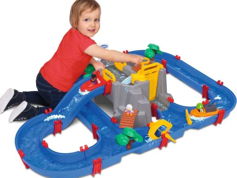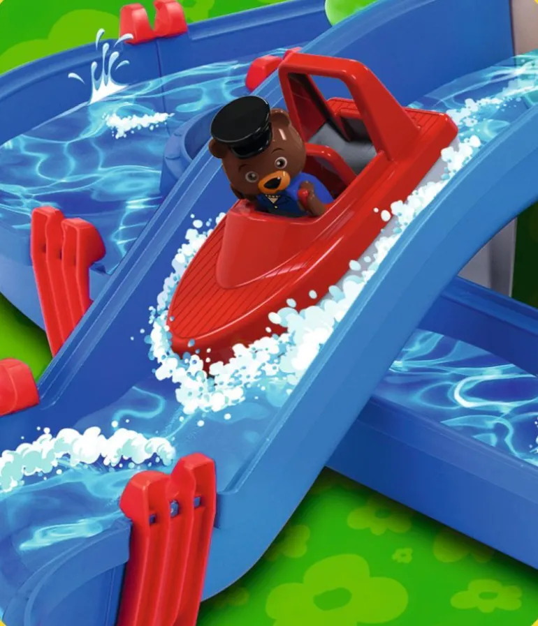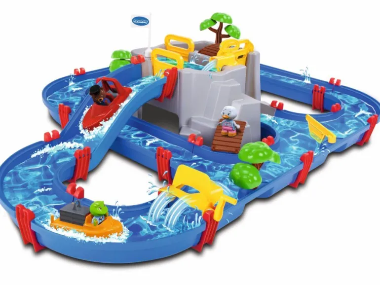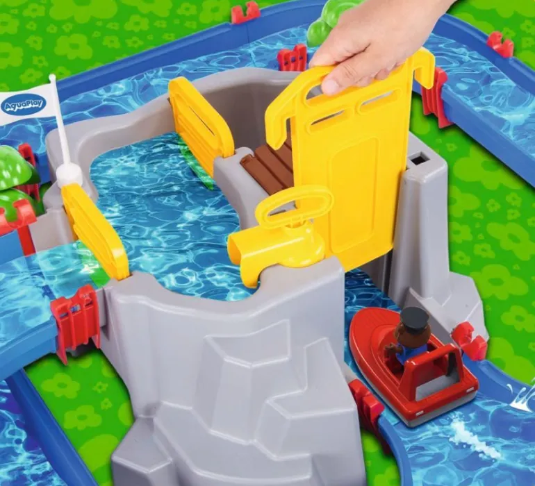 Mit dem Set AquaPlay Mountain Lake kommt Abenteuerfeeling in den heimischen Garten. Denn dieses große Spielset enthält einen hohen Berg mit Stausee, zwei Boote und drei süße Tierfiguren: die Ente „Lotta“, den Frosch „Nils“ und den Bären „Bo“. Gemeinsam mit den drei Freunden können die Kinder tiefe Bergseen durchqueren, wilde Wasserfälle hinunterfahren und wertvolle Schätze suchen. Im Spiel lernen die Kinder dadurch das Element Wasser kennen und sehen, wie Strömungen entstehen, sich deren Richtung ändern lässt und Wasser Schiffe anhebt.
