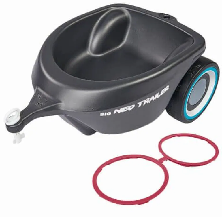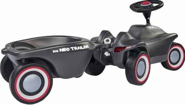 Passend zum neuen BIG-Bobby-Car Neo anthrazit ist auch ein BIG-Bobby-Car Neo Trailer in neuem, schicken Design erhältlich. Dieser ist auch mit allen anderen BIG-Bobby-Car kompatibel und lässt sich leicht mit dem enthaltenen Sicherheitskupplungsstift am Rutschfahrzeug befestigen. Der Anhänger verfügt über ein ganz besonderes Gimmick: Es sind Felgenringe in 2 verschiedenen Farben beigelegt: Türkis und Pink. So kann der Trailer ganz nach Geschmack immer wieder umgestaltet werden.