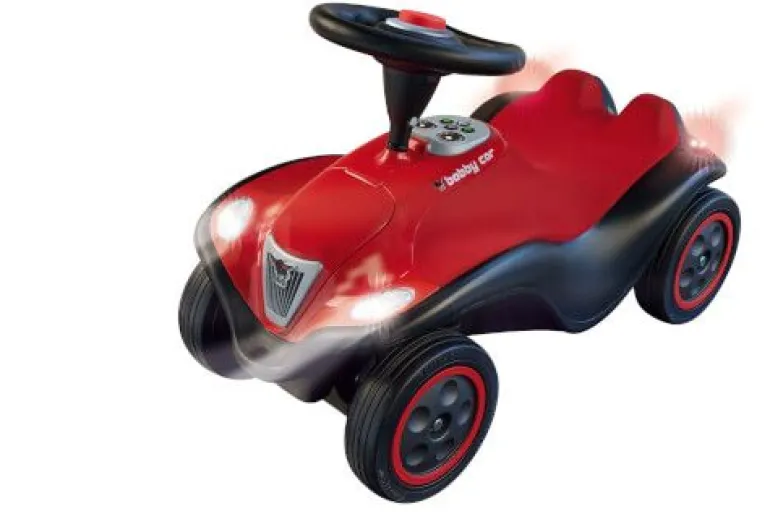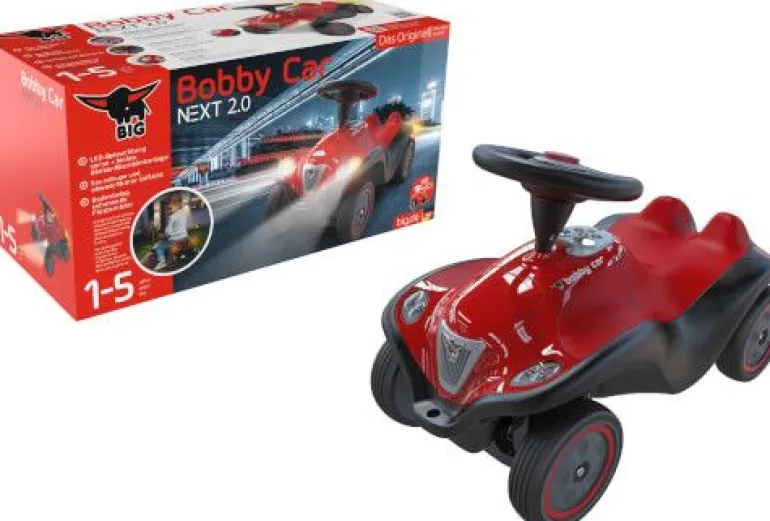 Das hochwertige Luxus-Rutschfahrzeug BIG Bobby Car Next 2.0 ist ein ganz besonderes Modell im büffelstarken Fuhrpark von BIG. Es handelt sich dabei, um die 2te Generation des beliebten Luxus-Modells BIG Bobby Car Next. Wie alle richtigen Automobile verfügt das BIG Bobby Car Next 2.0 serienmäßig über hochwertige Front- und Heckscheinwerfer, Blinker rechts und links sowie eine Warnblinkanlage. Damit sind die kleinen Fahrer:innen zu jeder Tages- und Nachtzeit sicher unterwegs und können im Bedarfsfall einen Richtungswechsel verkehrskonform anzeigen oder bei Problemen die nachfolgenden Fahrzeuge auf Gefahren aufmerksam machen. Die Bedienung ist kinderleicht und speziell für die Kleinsten durch ein Armaturenbrett mit Tasten möglich. Sollten die kleinen Fahrer einmal vergessen, das Licht auszuschalten, erlöscht dieses automatisch nach 10 Minuten. Alle weiteren Merkmale der büffelstarken BIG Bobby Car Next Modelle bleiben jedoch auch der 2ten Generation erhalten: Hoher Sitzkomfort ist durch den abnehm- und abwischbaren Softsitz garantiert. Inklusive breiter Flüsterräder sowie einer zu öffnenden Motorhaube. Durch die Direktanlenkung der Achse, besitzt das BIG Bobby Car Next einen besonders kleinen Wendekreis. Wie alle BIG Bobby Car ist das Next mit jeweils einer Anhängerkupplung vorne und hinten ausgestattet. Ein hochwertiges Lenkrad mit elektronischer Hupe und Anlasser rundet die Ausstattung ab. Hergestellt wird das BIG Bobby Car Next 2.0 Rot im modernen BIG-Werk in Deutschland. Für Kinder von 1-5 Jahren. BIG-büffelstark!