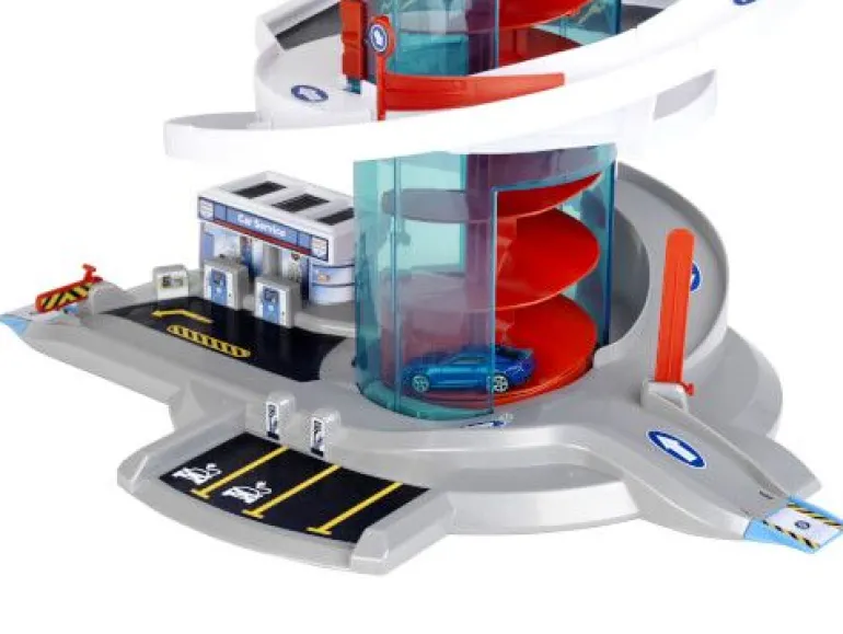 “Bosch Car Service Helix““ Parkgarage Mit Helix-Aufzug, der die Autos durch Drehen der Helix nach oben auf die einzelnen Ebenen befördert – mit Licht- und Soundeffekten – inklusive 2 Fahrzeugen – mit mehreren Weichen, um die Fahrtrichtung zu ändern – Parkhaus mit Abfahrtsrampen und 4 Tanksäulen – Höhe des Parkhauses: 57 cm Parkhaus im Bosch Car Service Design Geeignet für Kinder ab 3 Jahren“““
