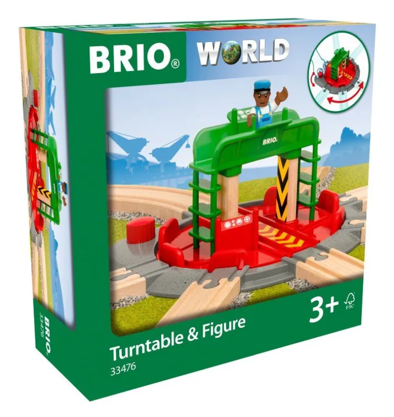 Zug-Drehscheibe mit sieben verschiedenen Schienenverbindungen und drehbarem Mittelteil, die groß genug für alle Loks der BRIO World ist. Natürlich darf auch die Lokführerfigur nicht fehlen. Durch Drehen des roten Knopfes beginnt sich die Drehscheibe zu drehen, bis sie an einer der sieben Schienenpositionen einrastet. Die bewegliche Lokführerfigur bedient die Drehscheibe von der Kommandobrücke aus, ob er wohl alles im Griff hat, wenn sich die Drehscheibe bewegt? Verbinde die Drehscheibe in sieben verschiedenen Richtungen mit deiner BRIO Bahn. Das realistische Spiel mit der Eisenbahn fördert das Verständnis der Kinder für die Umwelt auf spielerische Weise, während zugleich die feinmotorischen Fähigkeiten geschult werden. Für Kinder ab 3 Jahren.