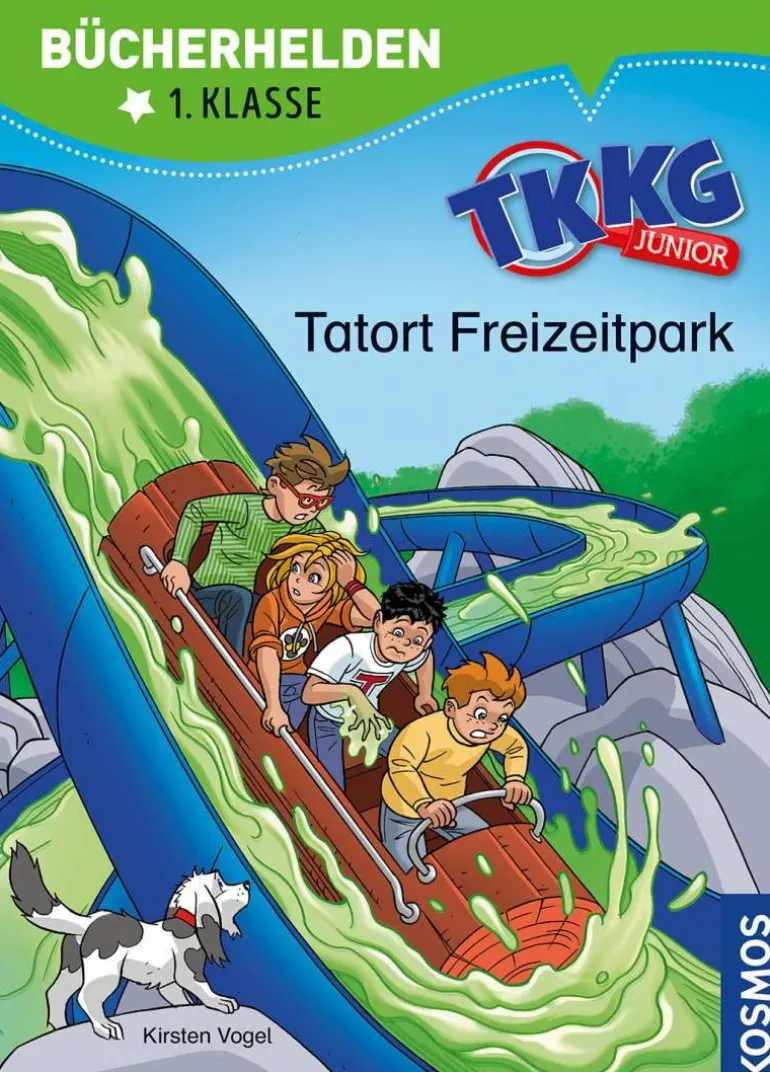 TKKG – das sind Tim, Karl, Klößchen und Gaby. Die vier Freunde lösen mutig jeden Fall und stürzen sich in spannende Abenteuer. Dabei darf Hund Oskar natürlich nicht fehlen. TKKG machen einen Ausflug in den Freizeitpark. Als Erstes wollen sie mit der Wildwasserbahn fahren. Doch was ist das? Statt Wasser fließt plötzlich stinkender grüner Schleim durch die Achterbahn! Die Detektive untersuchen, was passiert ist, und haben bald einen Verdacht. Lesen lernen ist schwer? Nicht mit dieser spannenden Geschichte, die auch Leseanfänger ab Klassenstufe 1 leicht bewältigen können. Illustrationen und ein Leserätsel am Ende jedes Kapitels machen den Band abwechslungsreich, sorgen für Erfolgserlebnisse und erhöhen die Lese-Motivation. So macht der Einstieg ins selbstständige Bücherlesen einfach Spaß.