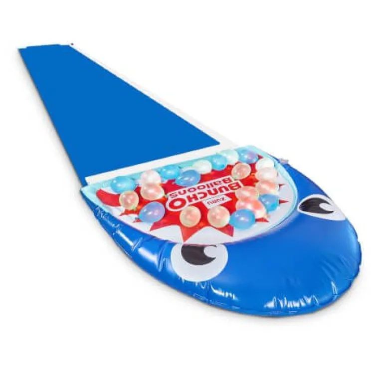 Rutsche mit der Bunch O Balloons Hai-Wasserrutsche in den Sommer! Rutsche auf der 4,8 m langen Rutsche in das Maul eines Hais! Die Wasserrutsche wird mit 3 Bündeln Bunch O Balloons (+100 Ballons) geliefert und sorgt für den ultimativen Sommerspaß! Fülle und verbinde 100 Wasserballons in weniger als 60 Sekunden. Dank der innovativen O-Ring-Technologie und der schnellen Befüllbarkeit kannst du dich auf einen unendlichen Wasserspaß freuen! Schließe sie einfach an einen Wasserhahn oder einen Schlauch an, fülle sie und erhalte Hunderte von Wasserballons – die ultimative Abkühlung für diesen Sommer.