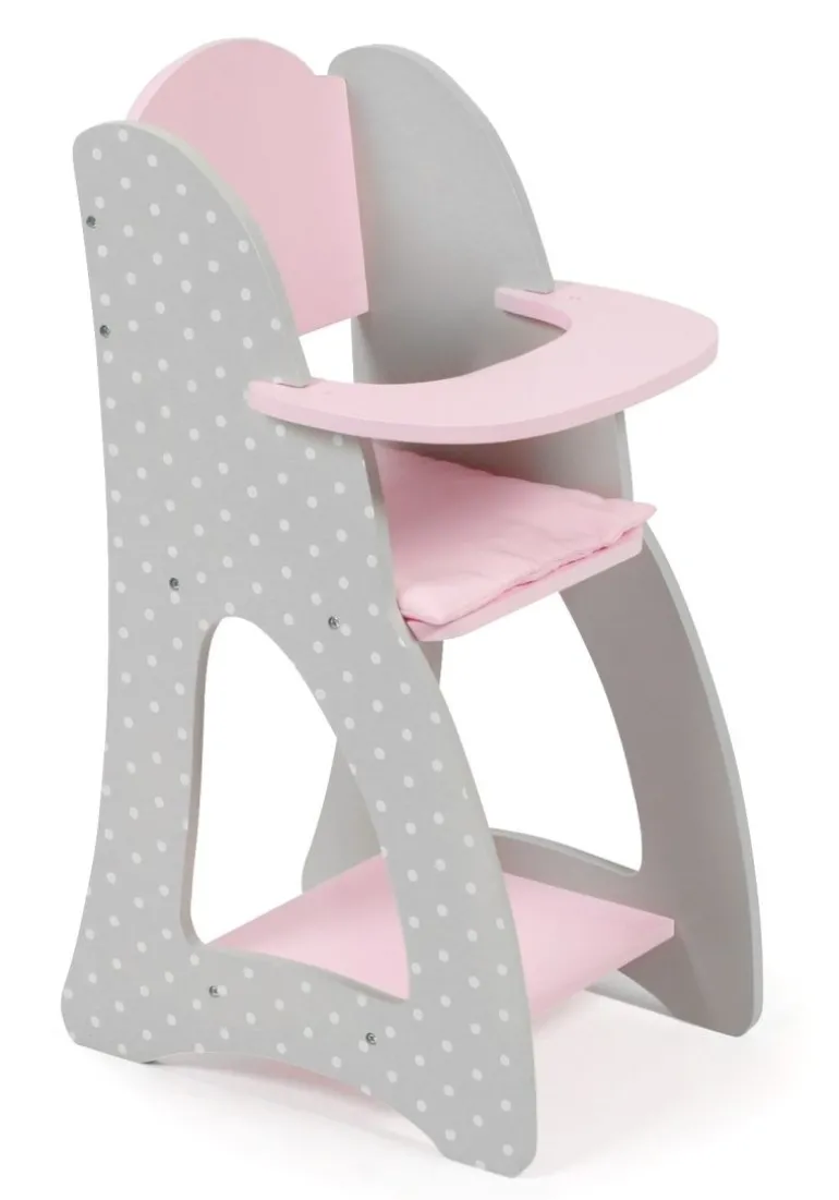 Schöner Puppenhochstuhl in grau-rosa mit Punkten.