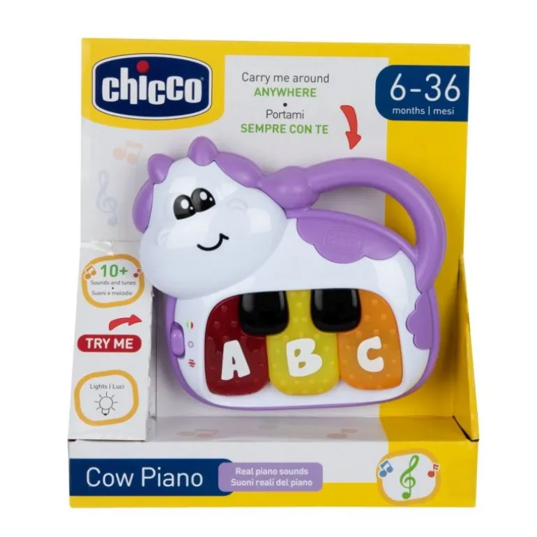 Elektronisches kleines Klavier in Form einer Kuh, um sich der Musikwelt auf sehr lustige Weise zu nähern
