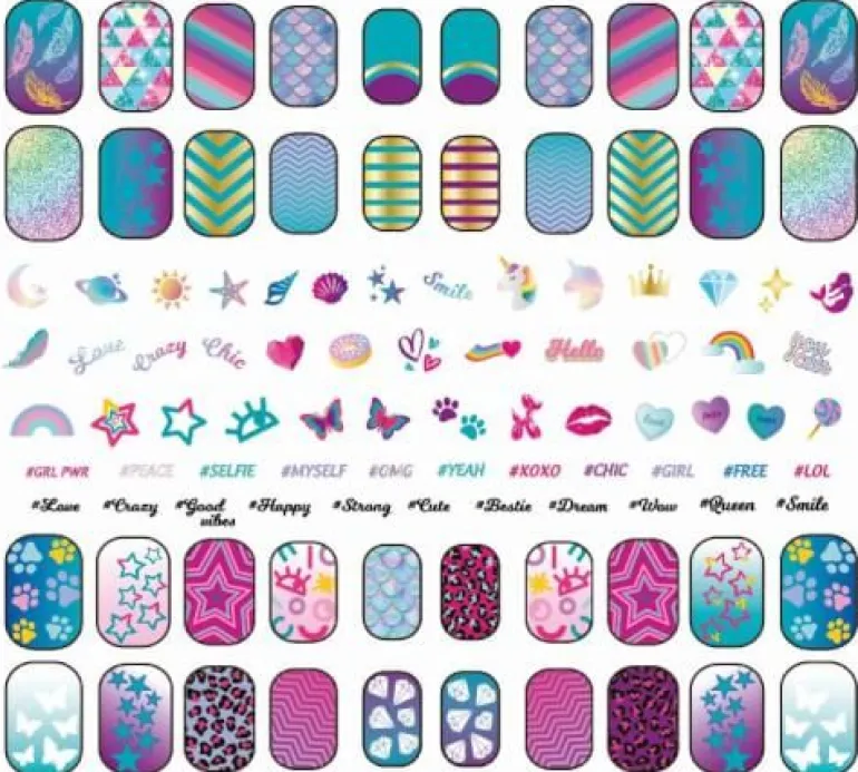 Nie zuvor waren deine Nägel so strahlend und leuchtend – selbst im Dunkeln! Alles, was du für perfekten Nail-Art-Spaß mit buntem Nagellack, künstlichen Fingernägeln und Aufklebern benötigst. Die übertragbaren Dekors mit ihrem speziellen Glow-in-the-Dark-Effekt sorgen für Nägel in strahlenden Farben, die im Dunkeln leuchten und zu jeder Gelegenheit passen. Die Sticker lassen sich leicht auf die Nägel kleben und sorgen für einen unnachahmlichen, individuellen Look, der am Tag und am Abend die Blicke auf sich zieht. Ein Spiel, das die Kreativität im Beauty-Bereich stimuliert.