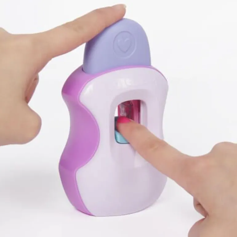Ganz einfach stylische Nägel mit coolen Motiven gestalten. Eine der Motivkartuschen ins Go Glam Nagelstudio einlegen, die Nägel mithilfe der Maske lackieren und nach dem Trocknen mit Herzen, Blumen, Schmetterlingen oder Smileys bedrucken. Ab 7 Jahren.