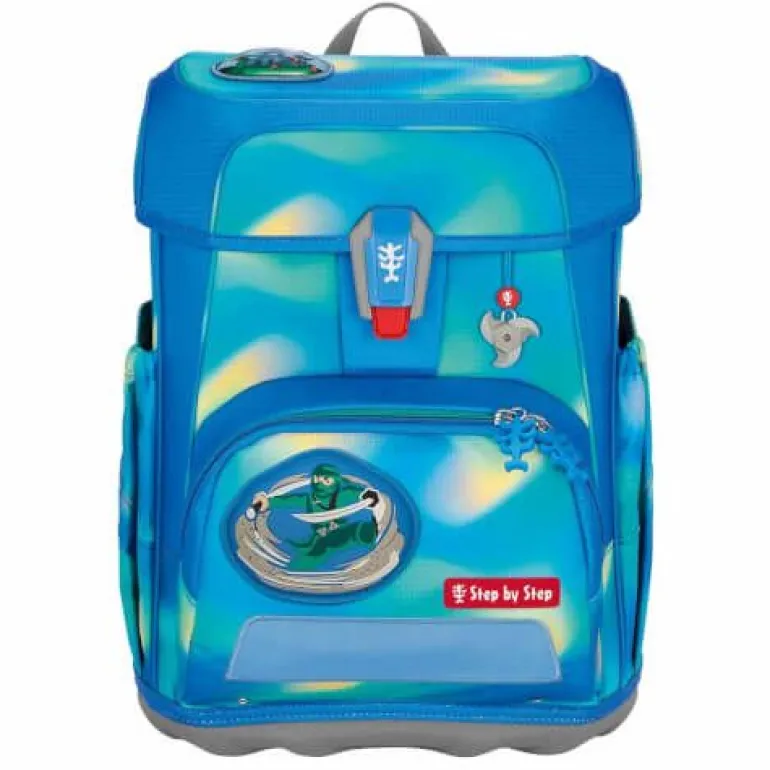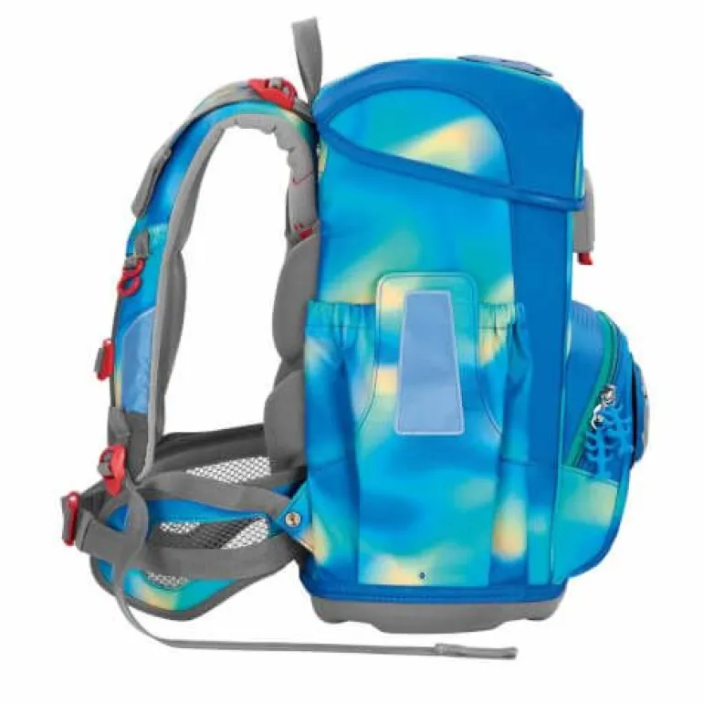– zur Beförderung von Schulutensilien vom Stift bis zum Sportzeug 5-teiliges Schulranzen-Set bestehend aus: – Schulranzen – Federmäppchen, komplett bestückt – Schlamperetui – Turnbeutel – MAGIC MAGS FLASH (2 Applikationen und 1 Anhänger) Schulranzen: – der leichte Schulranzen mit Leuchtmotiv – wechselbare Motive, MAGIC MAGS FLASH – EASY GROW SYSTEM: Schulranzen wächst von der 1. bis zur 4. Klasse mit – ultraleichte, elastische Fiberglas-Rückenkonstruktion und ergonomisch geschwungene, atmungsaktive Rückenpartie – verstellbare und ergonomische Schultergurte – Lageverstellriemen zur körpernahen Schulranzen-Positionierung – abnehmbarer, höhenverstellbarer Brustgurt – Gurtenden-Einhängung – gepolsterte, abnehmbare Hüftflosse – isolierte, nach außen wachsende Fronttasche mit Auslaufösen – zwei offene, nach außen wachsende Seitentaschen mit Auslaufösen – Aufhängeschlaufe – Fidlock-Magnetverschluss – Hauptfach mit Bücherfach – Laschen zur Aufbewahrung des Federmäppchens im Deckel – wasserdichte Bodenplatte – reflektierende Elemente sorgen für Sicherheit im Straßenverkehr und bei Dunkelheit – strapazierfähiges und wasserabweisendes Material mit 100 % PFC-freier Beschichtung – die Textilien bestehen zu 100 % aus recycelten PET-Flaschen – sozial verträglich und verantwortungsvoll produziert. Verbraucherhinweis: Die Bestandteile des MAGIC MAGS FLASH-Zubehörs lassen sich beliebig oft von den entsprechenden Flächen des Schulranzens abnehmen und durch andere MAGIC MAGS ersetzen. Diese sind in 3er-Sets separat erhältlich. Für eine neutrale Gestaltung des Ranzens können die MAGIC MAGS einfach komplett weglassen werden, ohne dass störende Klettflächen entstehen. So wird jeder Schulranzen zum Unikat. Das Gewicht des Schulranzen-Korpus ohne abnehmbare Elemente beträgt ca. 990 g. Das Gesamtgewicht des Schulranzens mit allen abnehmbaren Elementen beträgt ca. 1750 g.