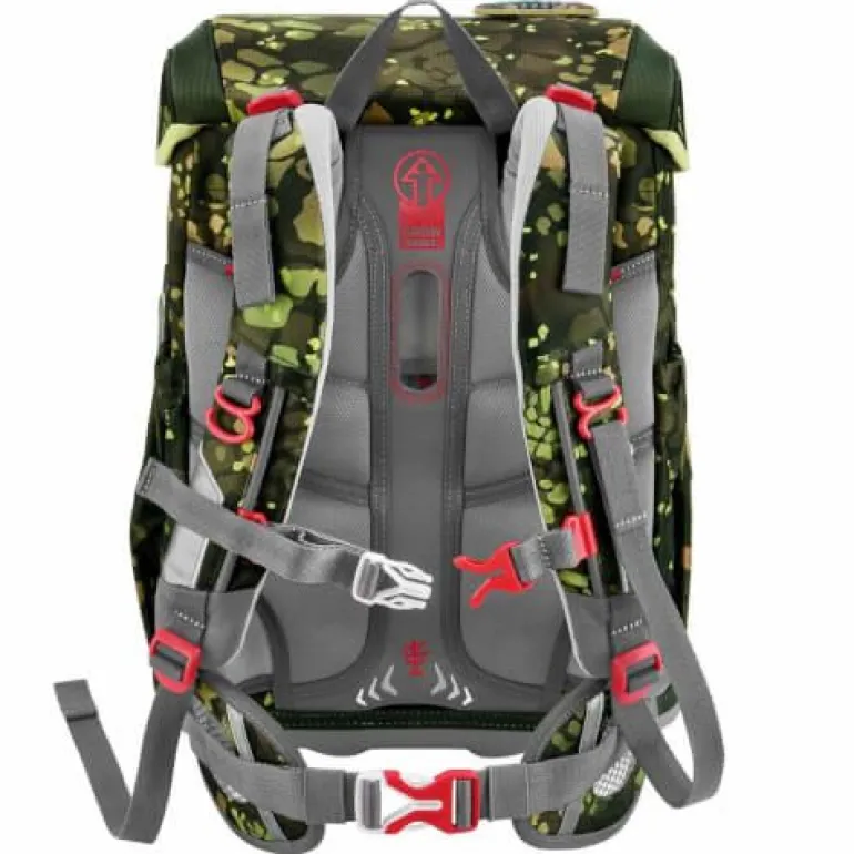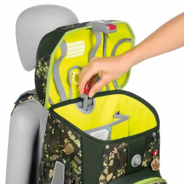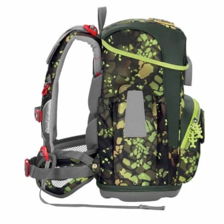 – zur Beförderung von Schulutensilien vom Stift bis zum Sportzeug 5-teiliges Schulranzen-Set bestehend aus: – Schulranzen – Federmäppchen, komplett bestückt – Schlamperetui – Turnbeutel – MAGIC MAGS (2 Applikationen und 1 Anhänger) Schulranzen: – der leichte Schulranzen nur ca. 990 g – wechselbare Motive, MAGIC MAGS – EASY GROW SYSTEM: Schulranzen wächst von der 1. bis zur 4. Klasse mit – ultraleichte, elastische Fiberglas-Rückenkonstruktion und ergonomisch geschwungene, atmungsaktive Rückenpartie – verstellbare und ergonomische Schultergurte – Lageverstellriemen zur körpernahen Schulranzen-Positionierung – abnehmbarer, höhenverstellbarer Brustgurt – Gurtenden-Einhängung – gepolsterte, abnehmbare Hüftflosse – isolierte, nach außen wachsende Fronttasche mit Auslaufösen – zwei offene, nach außen wachsende Seitentaschen mit Auslaufösen – Aufhängeschlaufe – Fidlock-Magnetverschluss – Hauptfach mit Bücherfach – Laschen zur Aufbewahrung des Federmäppchens im Deckel – wasserdichte Bodenplatte – reflektierende Elemente sorgen für Sicherheit im Straßenverkehr und bei Dunkelheit – strapazierfähiges und wasserabweisendes Material mit 100% PFC-freier Beschichtung – die Textilien bestehen zu 100% aus recycelten PET-Flaschen – sozial verträglich und verantwortungsvoll produziert. Verbraucherhinweis: Die Bestandteile des MAGIC MAGS-Zubehörs lassen sich beliebig oft von den entsprechenden Flächen des Schulranzens abnehmen und durch andere MAGIC MAGS ersetzen. Diese sind in 3er-Sets separat erhältlich. Für eine neutrale Gestaltung des Ranzens können die MAGIC MAGS einfach komplett weglassen werden, ohne dass störende Klettflächen entstehen. So wird jeder Schulranzen zum Unikat. Das Gewicht des Schulranzen-Korpus ohne abnehmbare Elemente beträgt ca. 990 g. Das Gesamtgewicht des Schulranzens mit allen abnehmbaren Elementen beträgt ca. 1750 g.