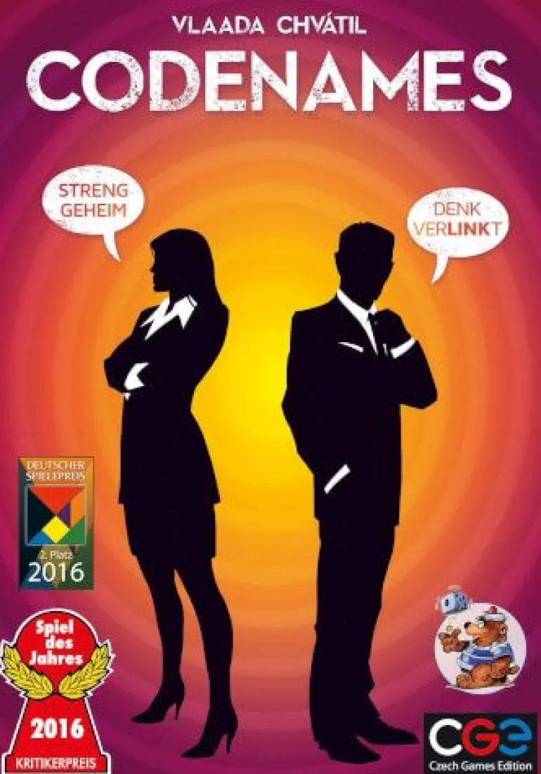 Das spannende Knobelspiel für clevere Agententeams. Jedes Team muss bestimmte Wörter finden, da sich hinter diesen Codenamen die Agenten ihrer Farbe verbergen. Nur die jeweiligen Geheimdienstchefs jedes Teams kennen die gesuchten Wörter und müssen ihr Team mit schlauen Hinweisen auf die richtige Spur bringen. Dabei dürfen sie aber nur wenig verraten. Das Team, das zuerst alle seine Agenten findet, gewinnt. Codenames, das als Spiel des Jahres 2016 ausgezeichnet wurde, bietet kleinen und große Gruppen Spielspaß mit cleverem um die Ecke-Denken. Spielmaterial: 265 Karten 1 Kartenhalter 1 Sanduhr 1 Spielregel