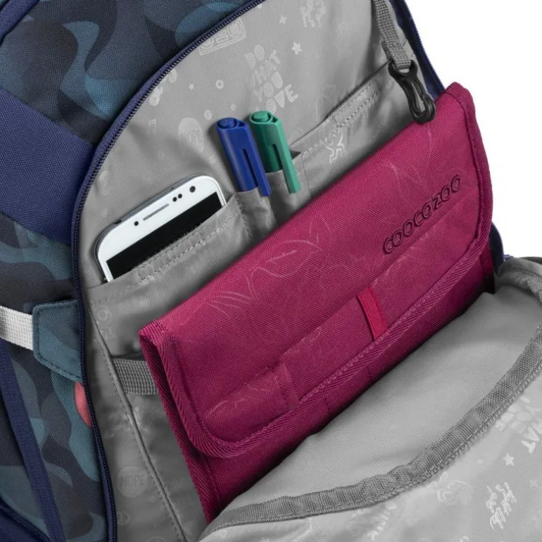 Vier Fächer für alle Schulsachen: zwei große Hauptfächer mit einem integrierten Bücherfach, ein Organizerfach und eine geräumige Fronttasche z.B. für die Brotzeitdose.