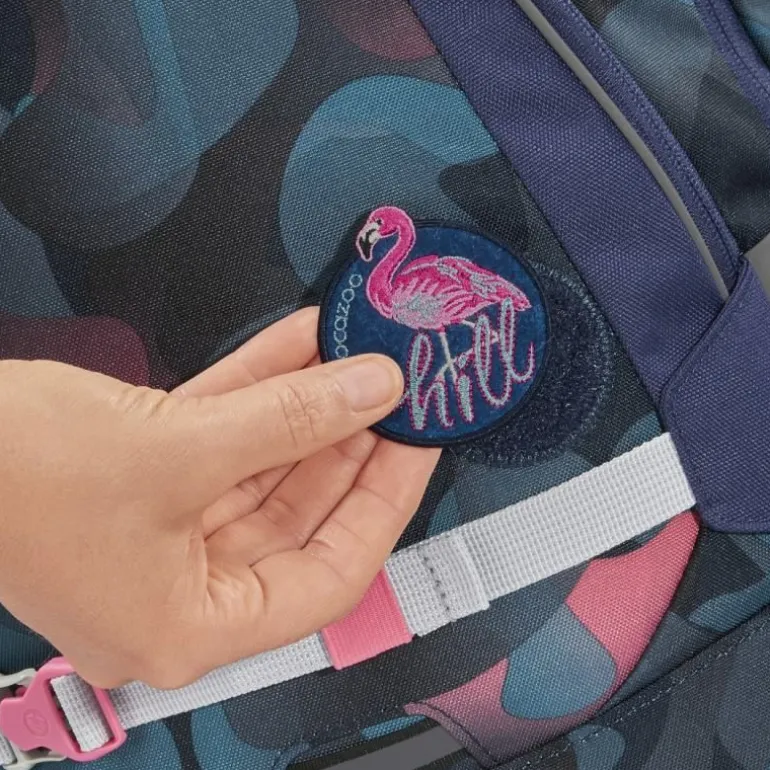 Schulrucksack individualisieren: Rucksack inkl. zweitem Gratis-Patch, extra zukaufbare Sets erhältlich – bestehend aus Patches und Anhängern, für die Anhänger gibt es eine extra Schlaufe am Rucksack.