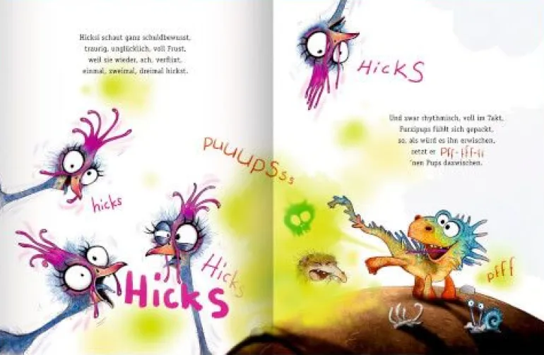Furzipups, der Knatterdrachen, wachte auf von einem Krachen, was ihn ungemein erschreckte, als er schließlich das entdeckte … Hicks! Hick-HICKS! Neben Furzipups’ Krater landet ein seltsam verzotteltes Urhuhn. Und es hat Schluckauf! Klar, dass Furzipups ihm helfen will – auch wenn die großen Drachen die Augen verdrehen. Aber was, wenn der Schluckauf einfach nicht verschwinden will?! ? Das zweite grandios gereimte Drachenabenteuer von Kultautor Kai Lüftner und Illustratorin Wiebke Rauers zum Vorlesen, Lachen, Mithicksen und Mitpupsen