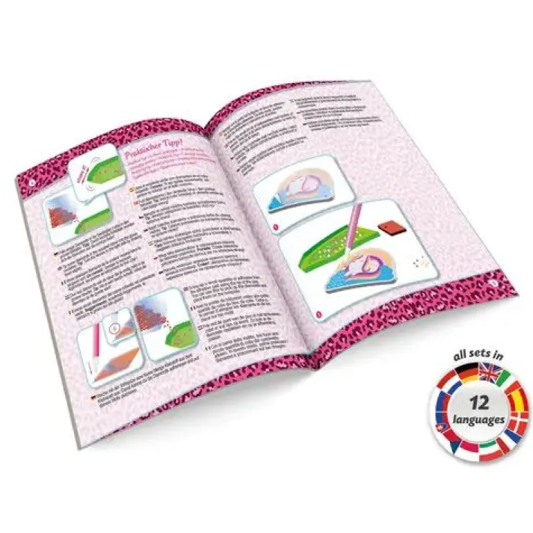 LENA® Diamond Art “Sonnenfänger“. Mit dem Inhalt dieses Sets können zwei funkelnde Suncatcher selbst gebastelt werden, die das Sonnenlicht brechen und so das ganze Kinderzimmer verzaubern. Enthält zwei bedruckte Acrylglasscheiben, Perlen, Anhänger und Faden. Mit ausführlicher, farbiger Anleitung. Für Kinder ab 6 Jahren. Verpackt in Faltschachtel mit Produktinformationen.