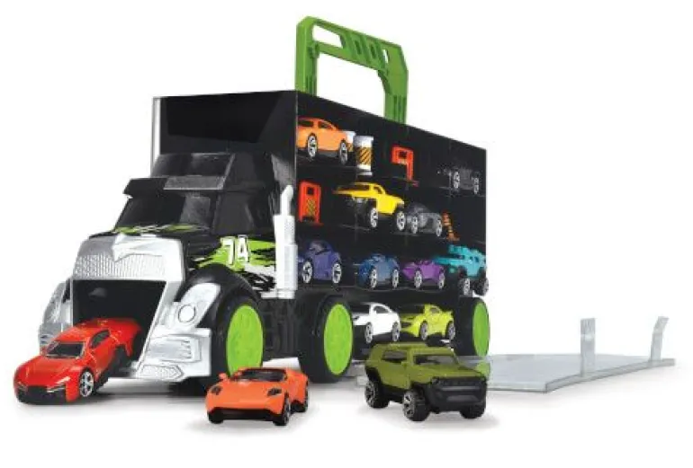 Transporter Freilauf, Platz für 26 Fahrzeuge auf 3 Ebenen, Exit Rampe durch Führerhaus, mit Tragegriff, 43 cm,