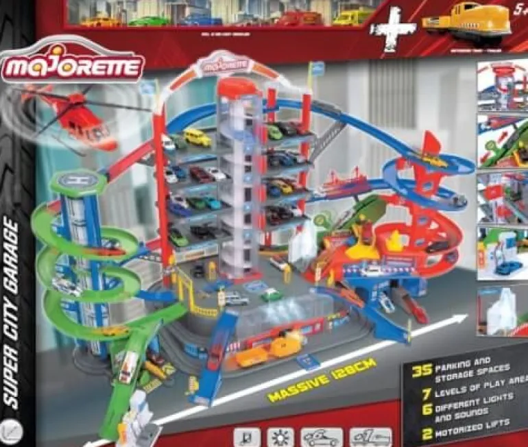 Die neue Super City Garage von Majorette hat alles, was Kinder zum Spielen brauchen. Von einem Autoaufzug über einen Bahnhof, Tankstelle, Parkhaus bis hin zur Feuerwehr- und Polizeistation.