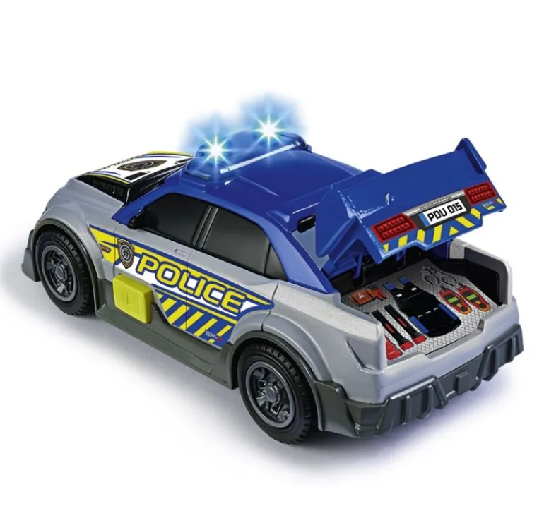 Spielzeug Polizei Auto für Kinder ab 3 Jahren, mit Licht- und Soundeffekte, 15 cm lang Freilauf, Licht, Sound, ausklappbares Heckklappe zum öffnen