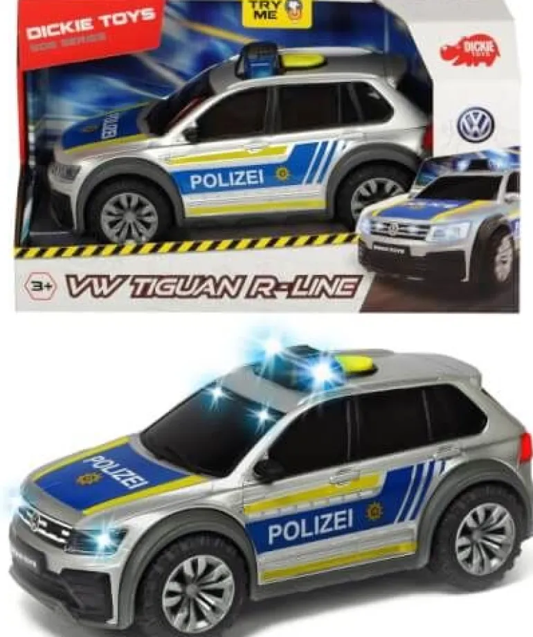“VW Tiguan R-Line Polizei: kraftvoller Einsatz-SUV Dickie Toys gibt bekannten Fahrzeugmodellen ein neues Gesicht. Der VW Tiguan R-Line Polizei in deutscher Version wurde dem großen Vorbild mit viel Detailliebe nachempfunden und für den Einsatz im Kinderzimmer ausgestattet. Das Spielzeugauto mit Freilauf im Maßstab 1:18 verbreitet auf Knopfdruck stilechte Licht- und Soundeffekte. Die notwendigen Batterien sind bereits enthalten. Der VW Tiguan R-Line Polizei ist der perfekte Sammeltipp für junge Autofans ab drei Jahren. # Originalbez.: VW Tiguan R-Line Polizei # Spielzeugauto mit Freilauf # Modell: VW Tiguan R-Line in deutscher Polizeioptik # Licht und Sound # Batterien enthalten # Maßstab 1:18 # Länge: 25 cm # Altersempfehlung: ab 3 Jahren “