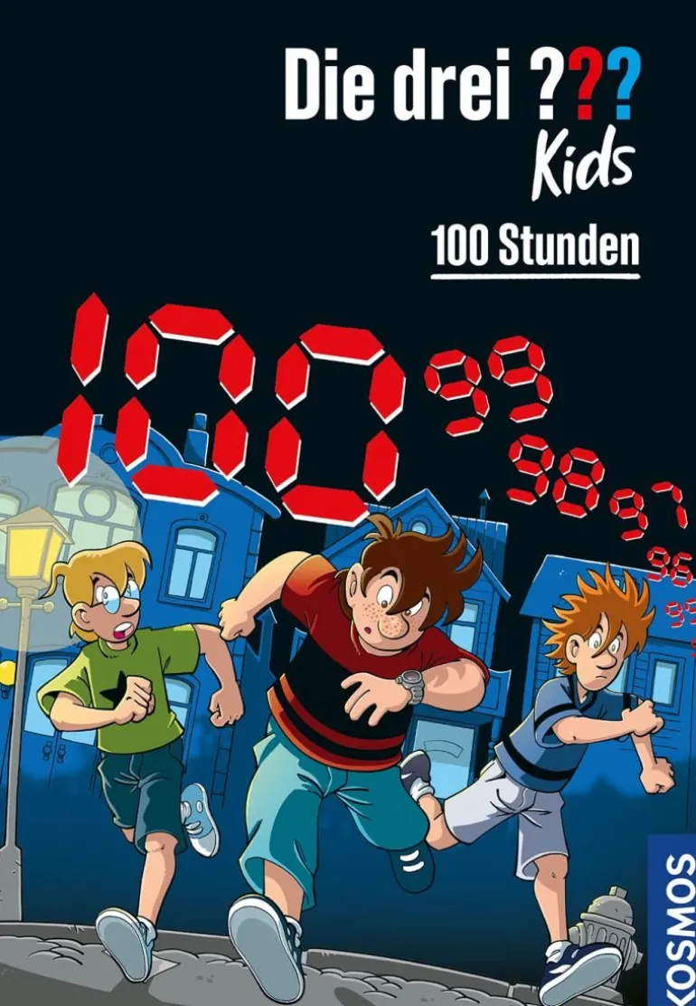 Kommissar Reynolds wundert sich: Wer hat den Erpresserbrief an die drei ??? geschrieben? Justus, Peter und Bob haben genau 100 Stunden Zeit, um die Forderungen des Erpressers zu erfüllen! In der Geschichte wird der Stunden-Countdown runtergezählt – das sorgt für Tempo. Es gibt viele Aufgaben und Rätsel zu lösen. Bei ihren Ermittlungen kommen die Detektive an bekannten Orten in Rocky Beach vorbei. Sie treffen Onkel Titus, Tante Mathilda, Skinny Norris und viele alte Bekannte. Dann führt die Spur die Detektive ins Gefängnis. Werden Justus, Peter und Bob den Bösewicht in der letzten Minute noch schnappen? Der 100. Band der Reihe „Die drei ??? Kids“.