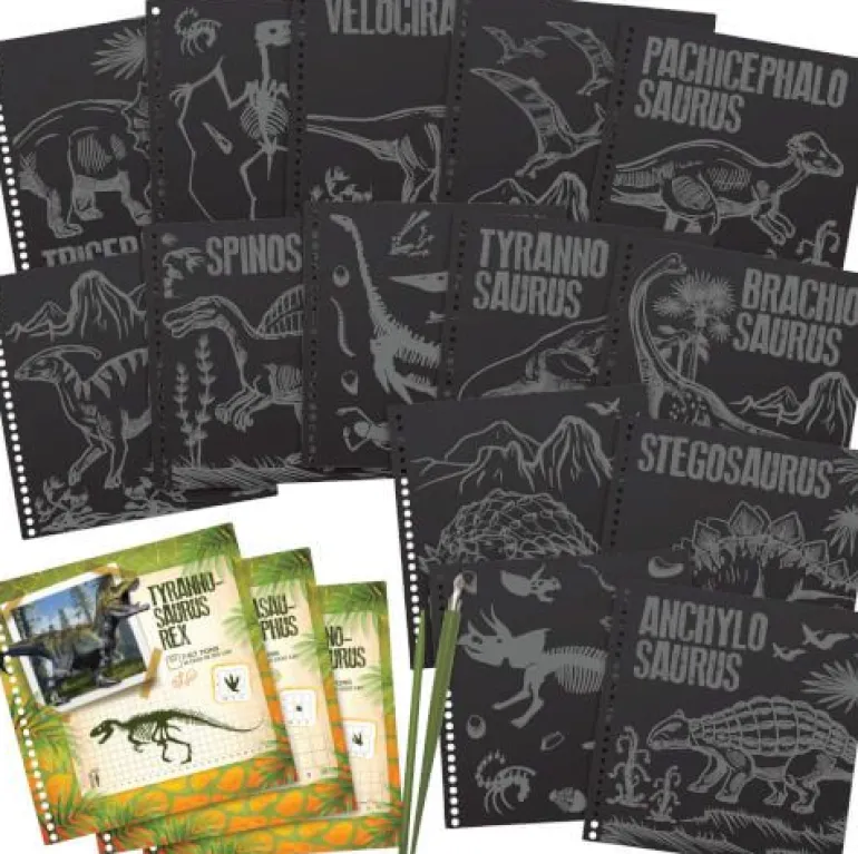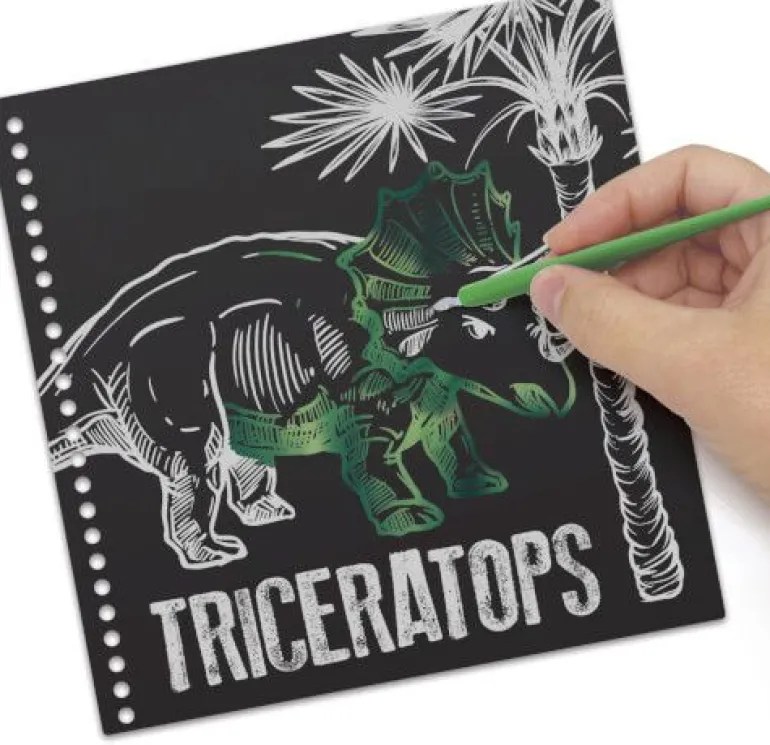Vierzehn Dinosaurierbilder warten darauf, von kleinen Künstlern enthüllt und verschönert zu werden. Eine entspannende und kreative Tätigkeit, die Spaß macht. Dieses Buch enthält 14 Kratzbilder und 2 Kratzstifte.