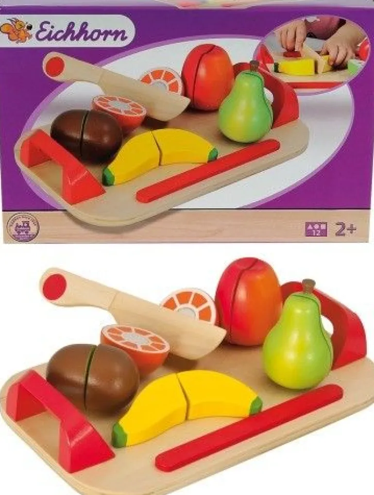 Mit dem Eichhorn Schneidebrett können die Kleinen die ersten Versuche unternehmen Obst zu schneiden.