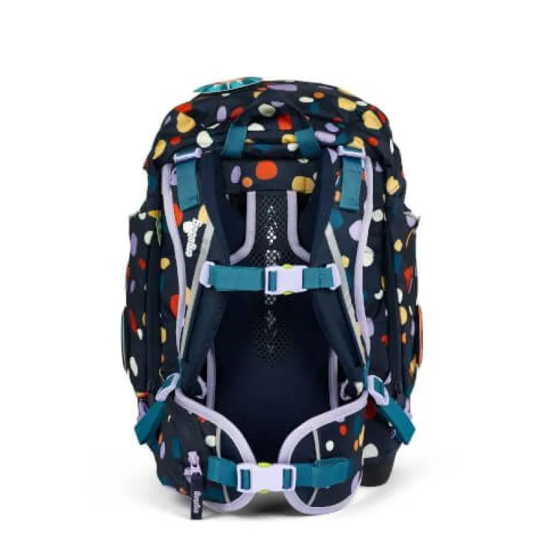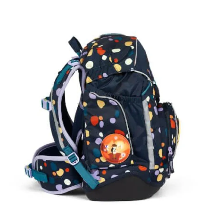 6-teiliges Set Höhenverstellbares Tragesystem “Your-Size-System“ Hoher Tragekomfort durch breite, gepolsterte Beckenflossen Gute Sichtbarkeit durch Reflektoren rundherum Fest angenähte Seitentaschen Loop zum Anbringen von Hangies Fahrkartenfach am Beckengurt Kinderleichtes Öffnen und Schließen durch Magnetschnalle Individualisierbar durch Kletties, Hangies, Zippies und Zip-Sets