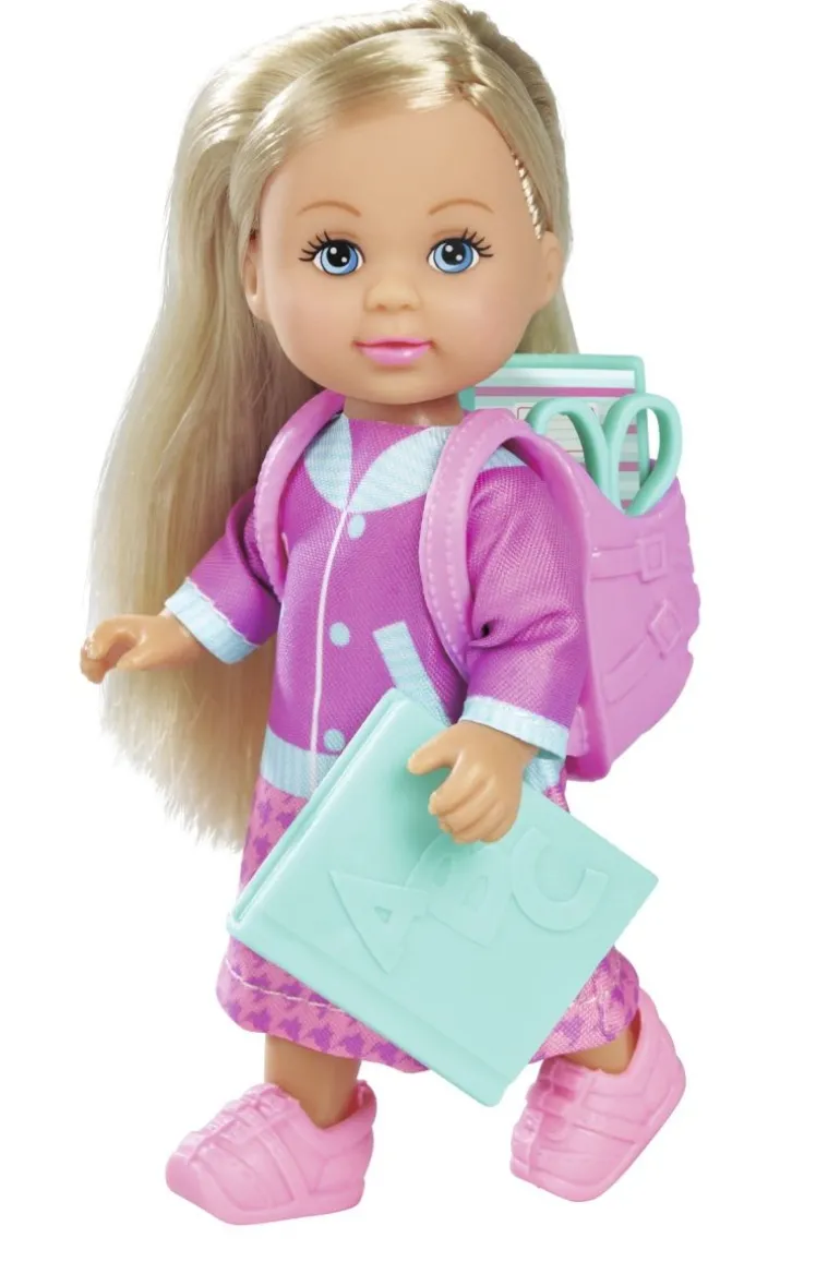 • Evi LOVE School: Evi LOVE, die kleine Schwester von Steffi LOVE, liebt Mode und Tiere und hat viele verschiedene Hobbys. Evi LOVE School geht jetzt voller Vorfreude in die Schule • Im stylischen Outfit – die 12 cm große Evi Puppe trägt einen Rock, eine Collage-Jacke und Turnschuhe • Mit passendem Zubehör – Evi hat alle wichtigen Schulutensilien in ihrem Rucksack dabei: ein Federmäppchen, zwei Bücher, einen Stift und eine Schere • Altersempfehlung: Das Spielzeug ist für Kinder ab 3 Jahren geeignet • Simba – Elefantenstarker Spielspaß! Im Zentrum der Produktentwicklung steht die Begeisterung der Kinder. Für Jungen und Mädchen, Klein und Groß. Kinder sollen Spaß haben und gefördert werden. Evi freut sich riesig auf ihren ersten Schultag und ist bereit, neue Herausforderungen anzunehmen. Die kleine Schwester von Steffi LOVE trägt ein stylisches Outfit bestehend aus einem Rock, einer coolen Collage-Jacke und lässigen Turnschuhen. Mit diesem Look ist die beliebte Puppe nicht nur bestens auf den Unterricht vorbereitet, sondern zieht auch auf dem Schulhof alle Blicke auf sich. Evis geräumiger Rucksack macht das Styling komplett und beherbergt alle notwendigen Schulutensilien: ein Federmäppchen, zwei Bücher, einen Stift und eine Schere. Die Größe von 12 cm macht Evi LOVE School zum perfekten Spielzeug für Kinder ab 3 Jahren für viele Momente voller Spielspaß.